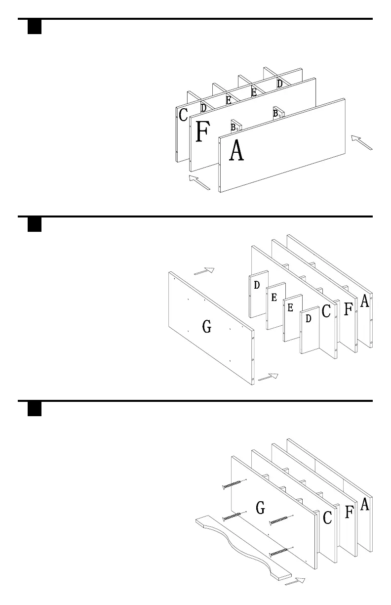 Attach bottom panel (G) to shoe dividers (D) and (E).