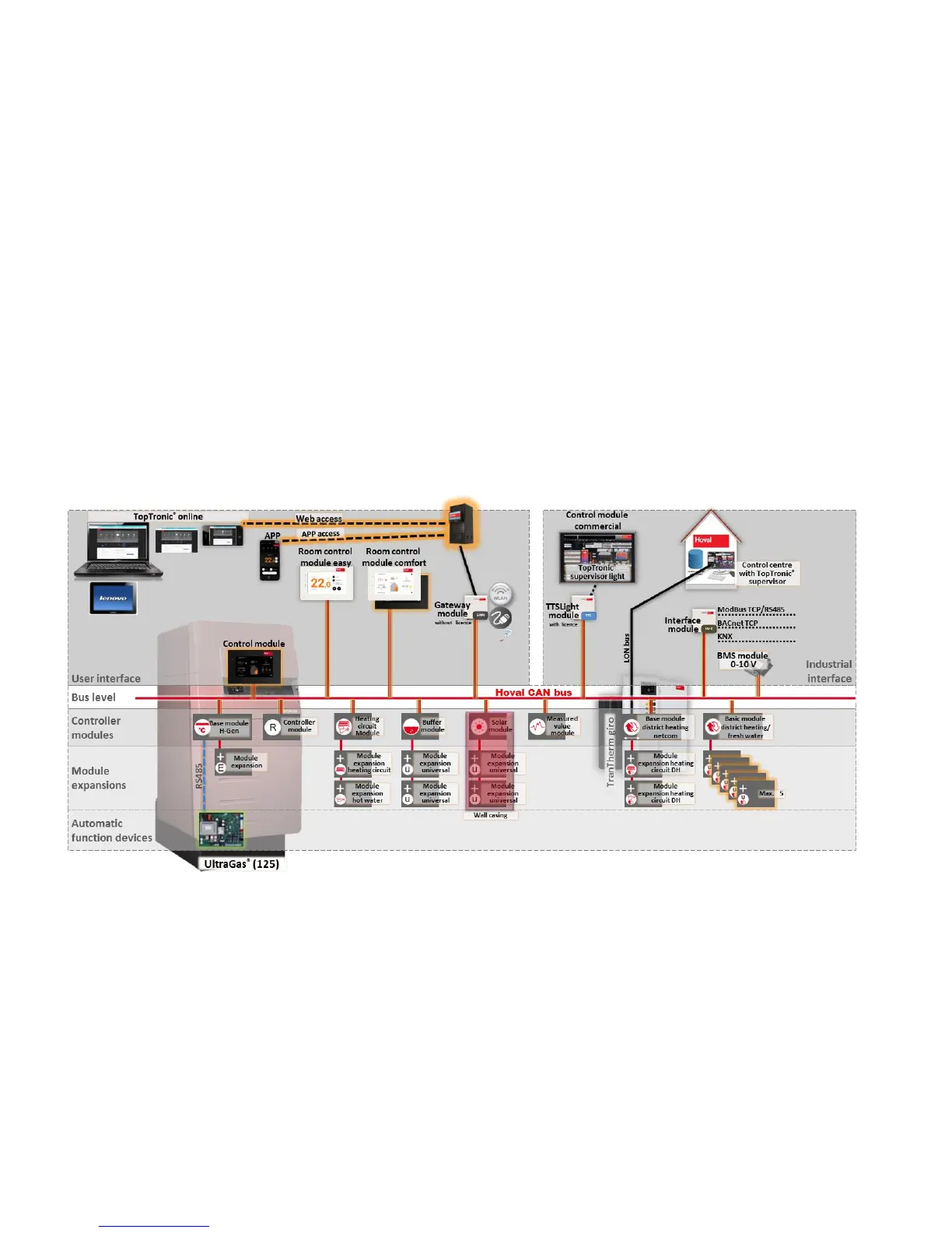 E controller system is based on independent controller units (modules) that are connected together via the Hoval CAN bus. The individual modules can