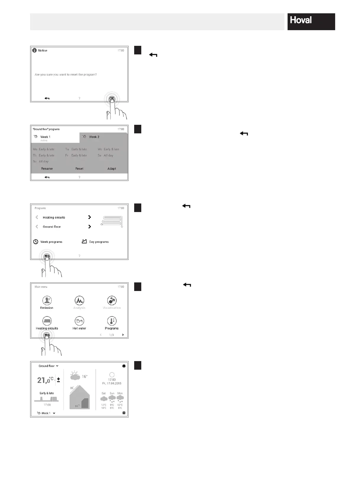 If the reset week program is active, the default settings are displayed on