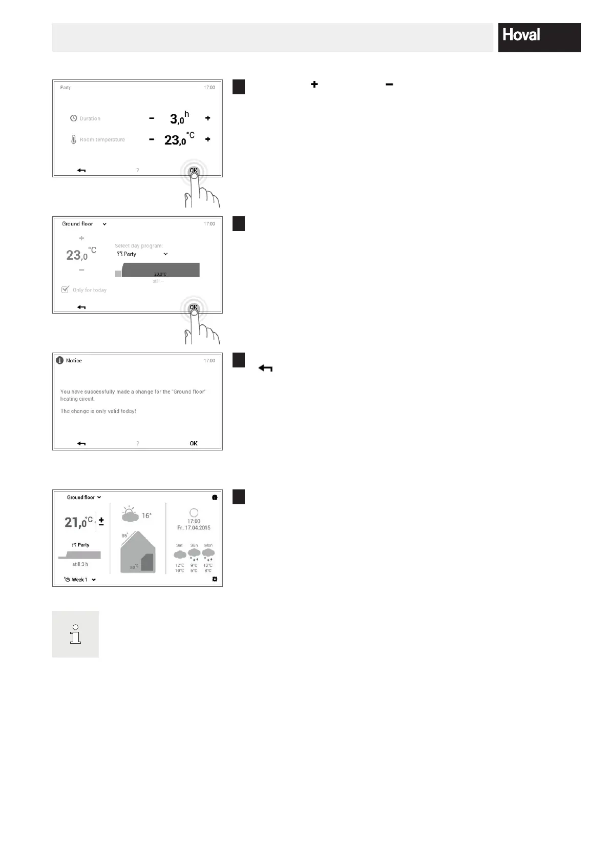 The active day program and the set room temperature can be seen on