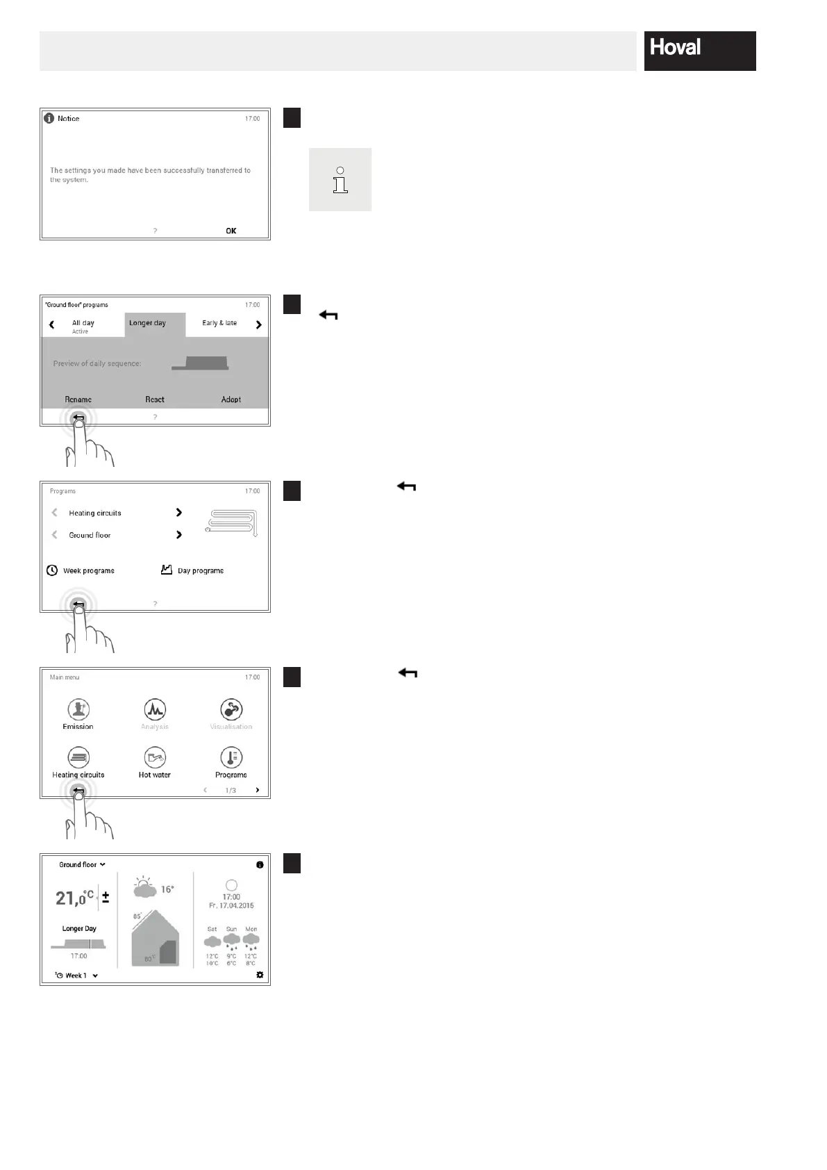 The adaptations are displayed in the selected day program. Press Back