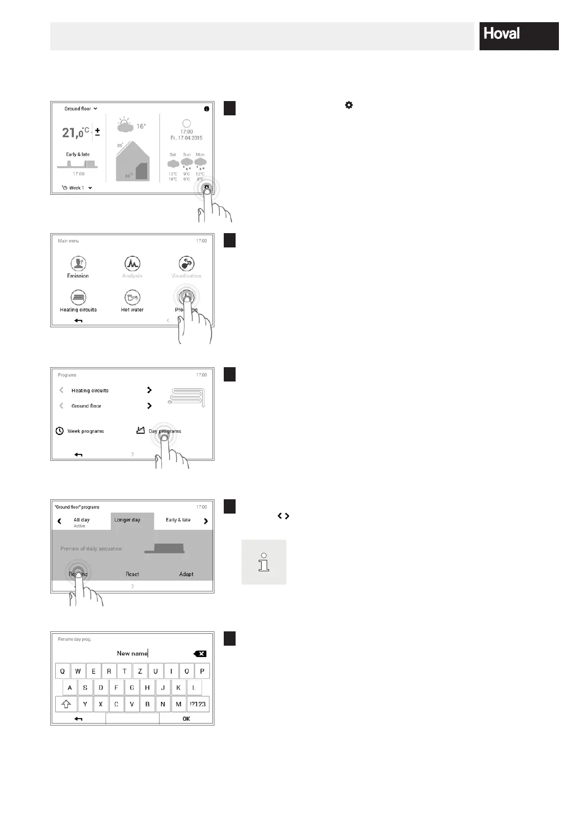 Select the required heating circuit and then Day programs.