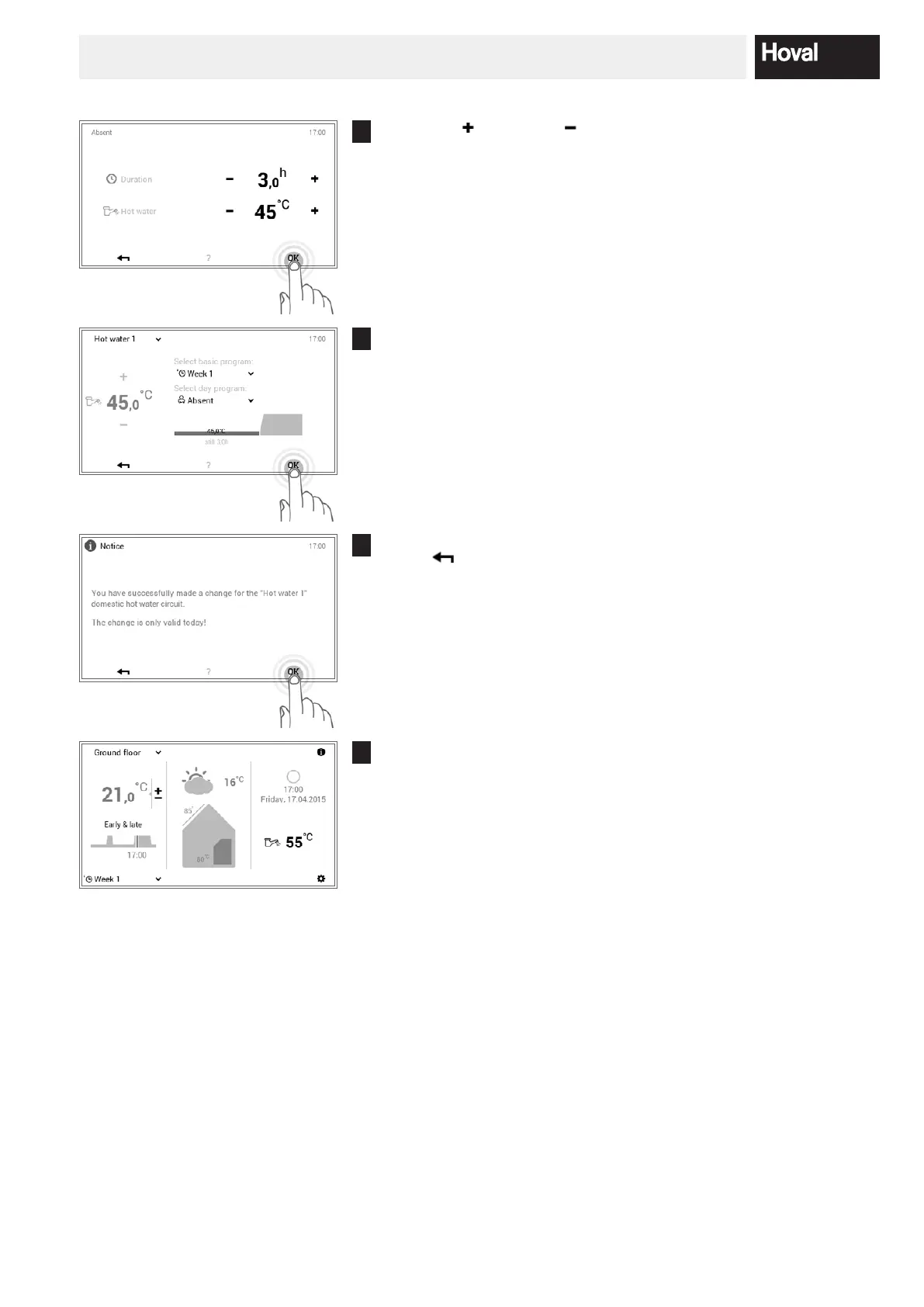 Press plus ( ) and minus ( ) to set the required duration of the absence
