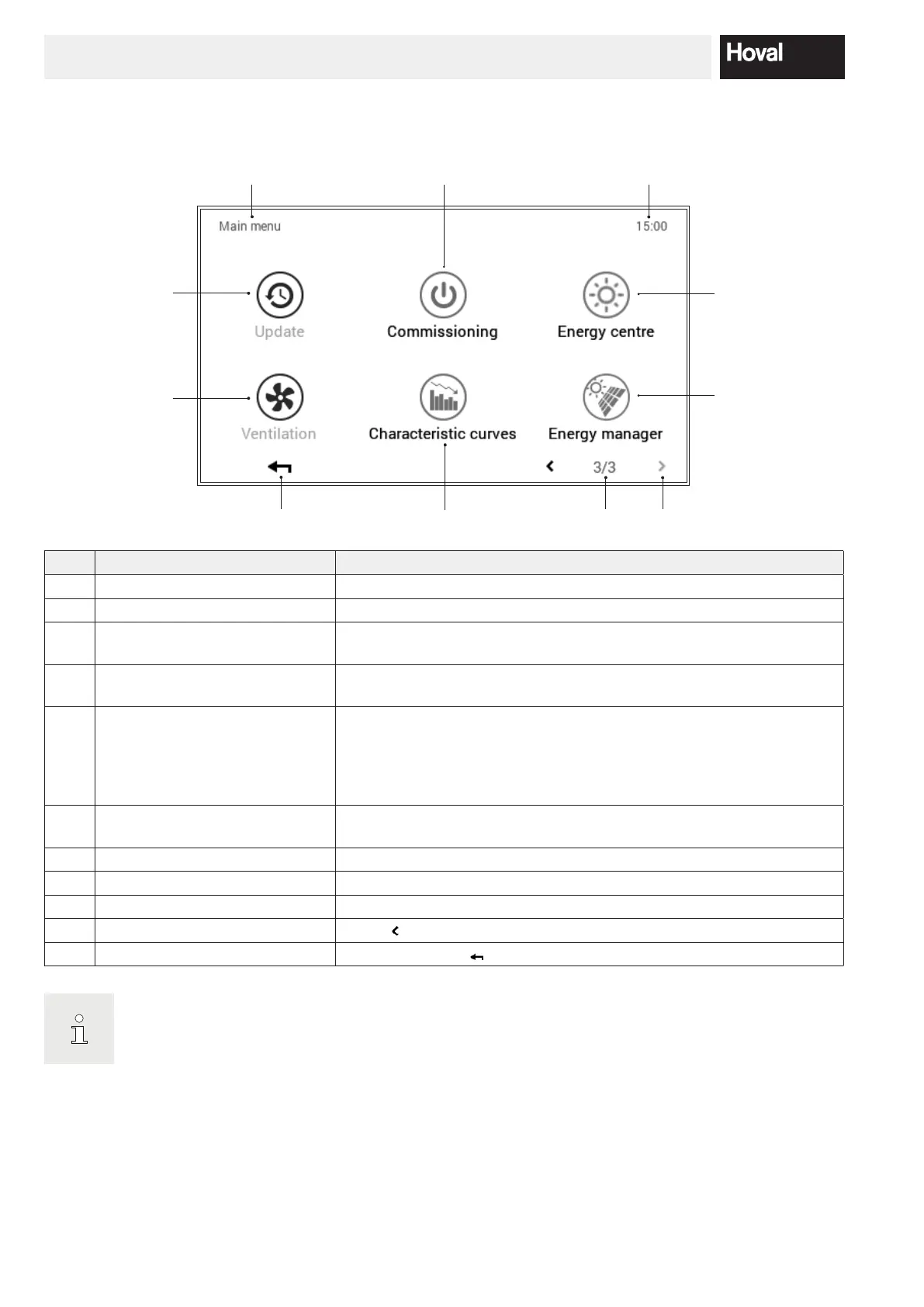 9 Page in the main menu Display of the active main menu page (1)