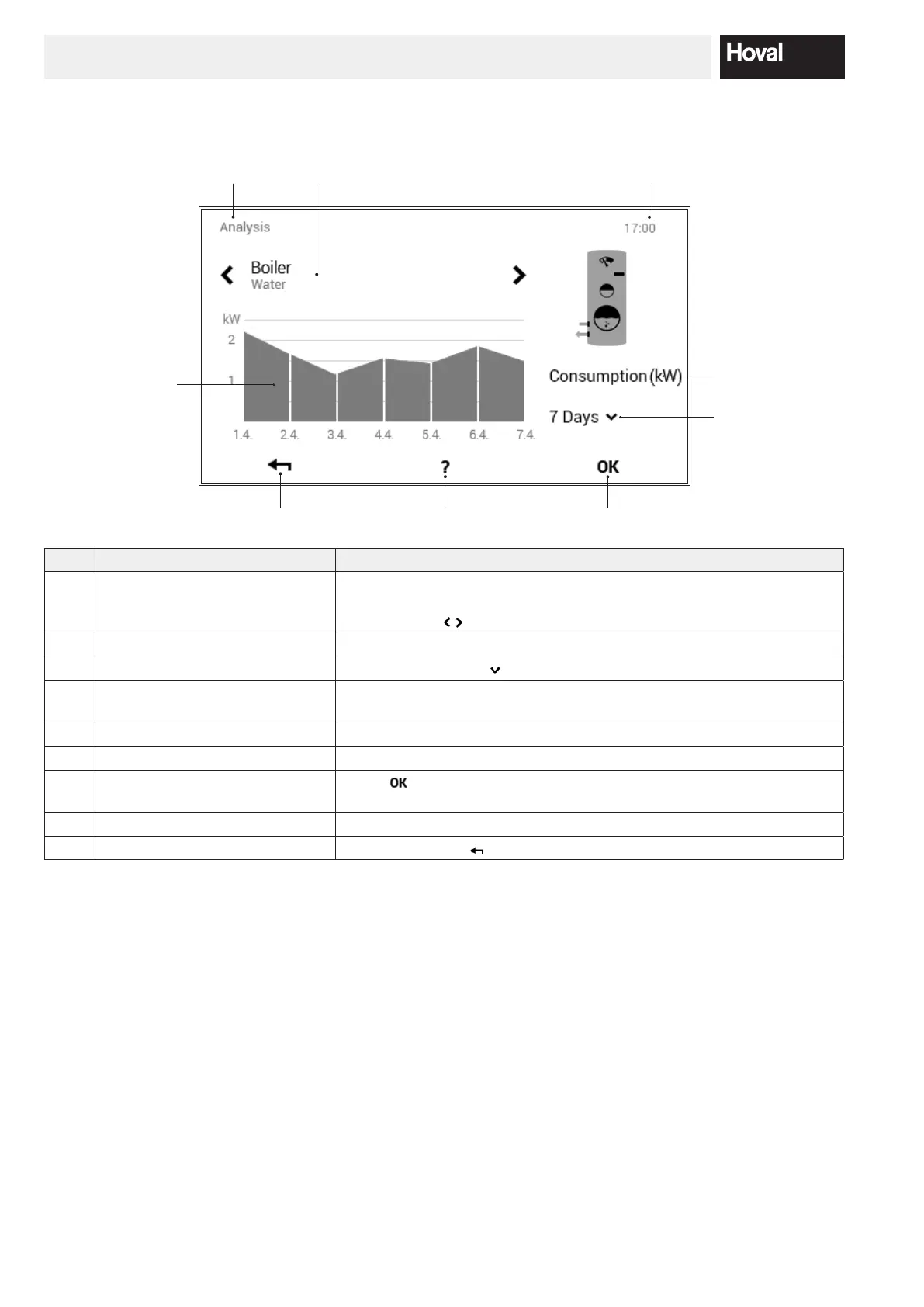 4 Analysis / graphic Display of the measuring parameter of the selected heat generator, hea-