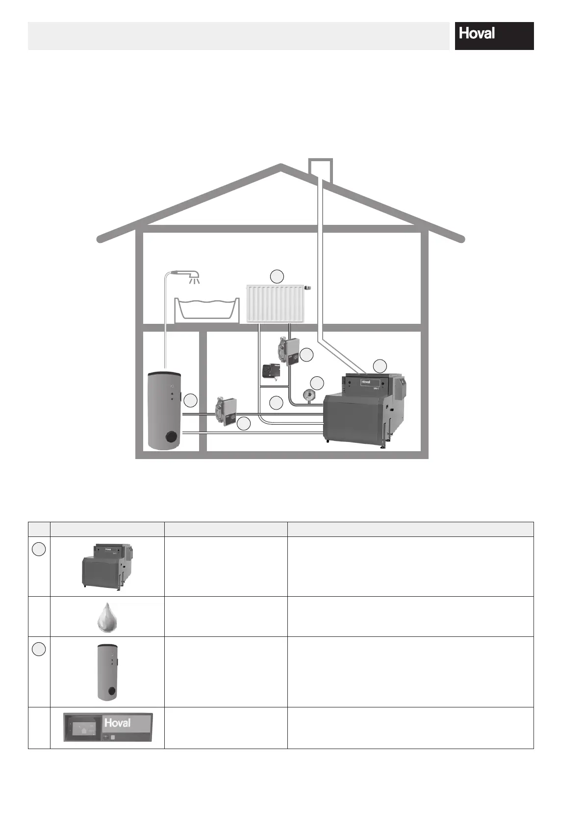 Depending on the type of heating system selected, some of the components might be dierent from the presentation