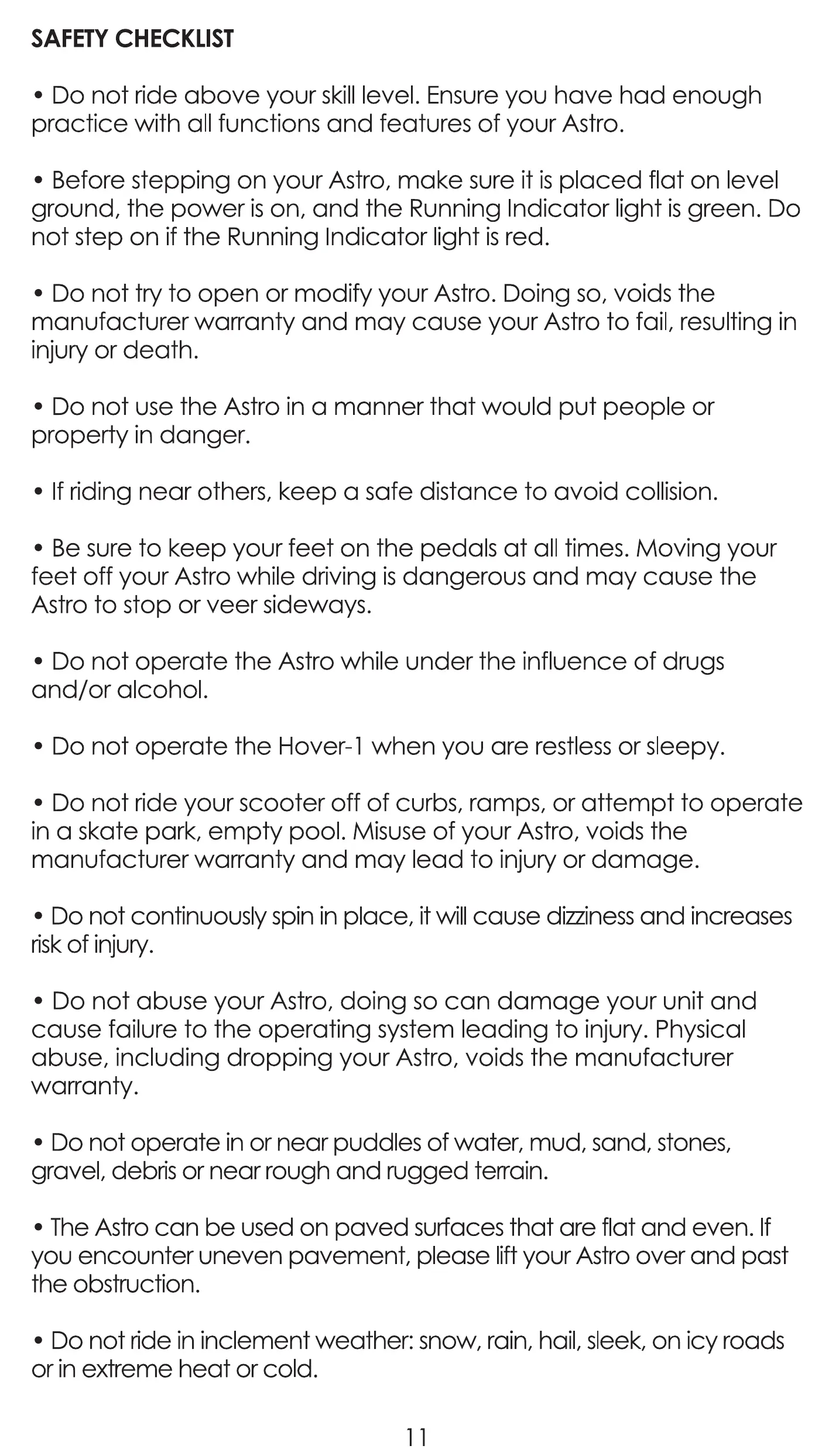 manufacturer warranty and may caose your Astro to fail, resulting in