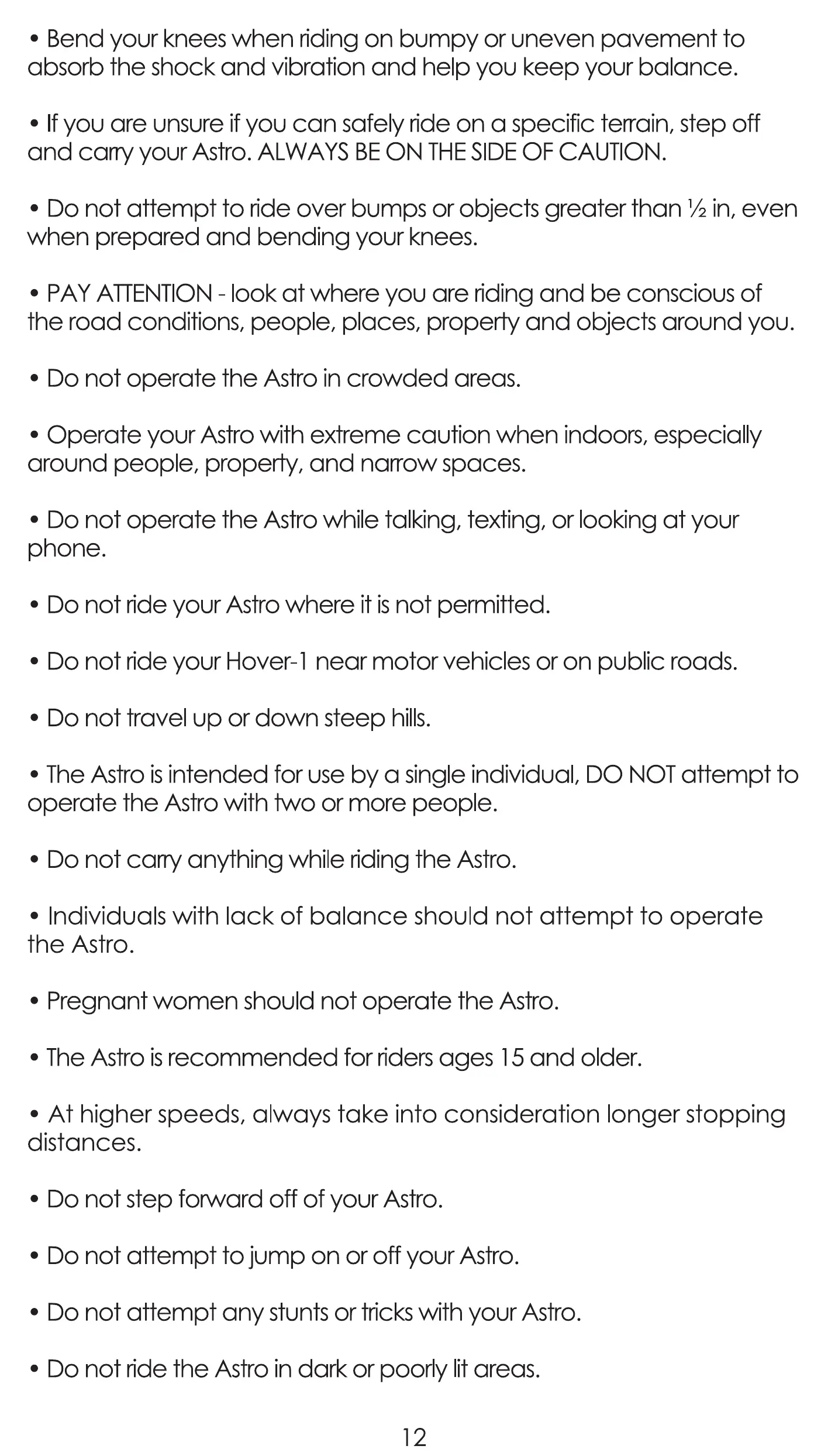 • The Astro isintended for use by a single individual, DO NOT attempt to