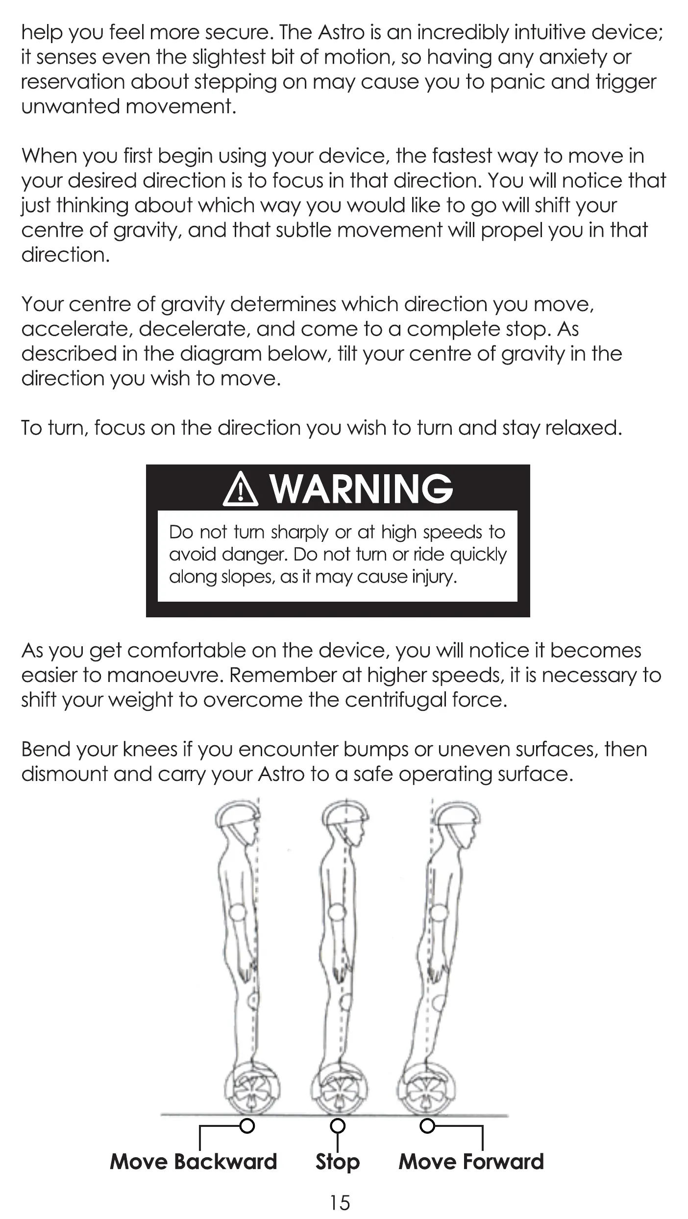 To turn, fOCUSon the direction you wish to turn and stay relaxed.