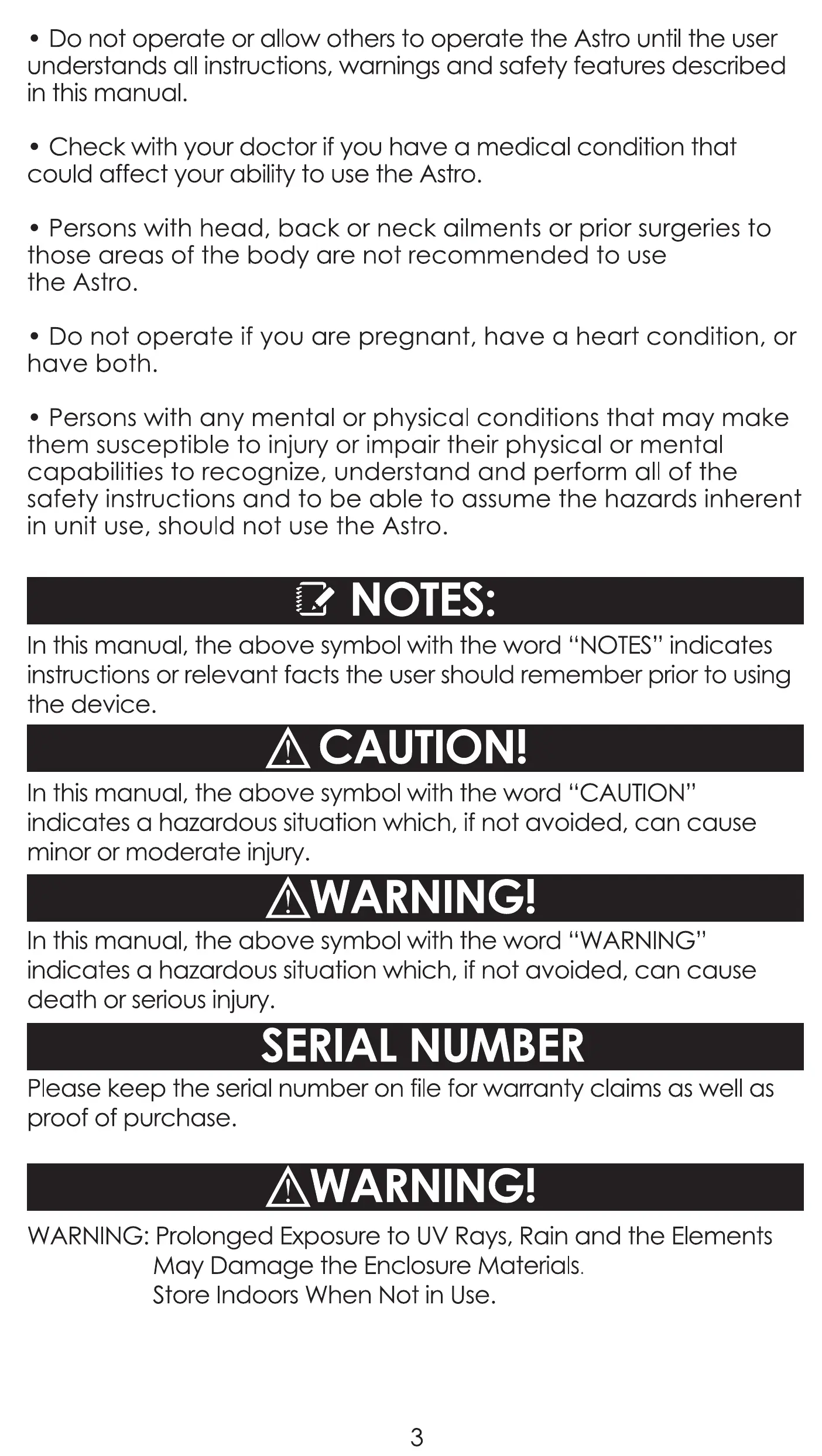 WARNING: Prolonged Exposure to UV Rays, Rain and the Elements