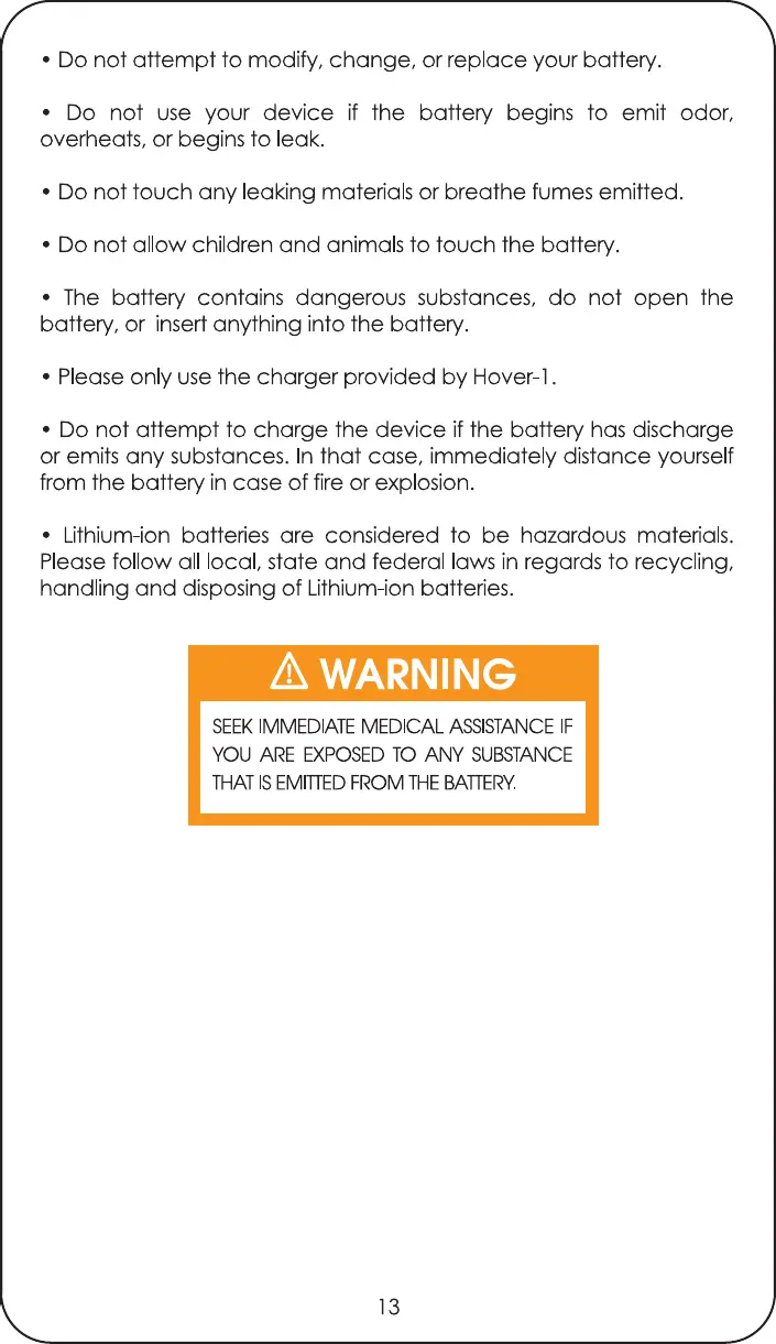 Hover-1 AVIATOR - SPECIFICATIONS; PARTS LIST