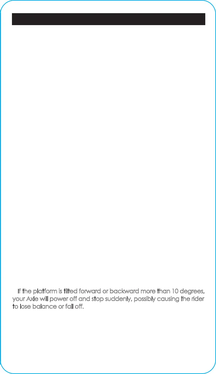 • Do not use your Axle if the battery begins to emit odor, overheats,