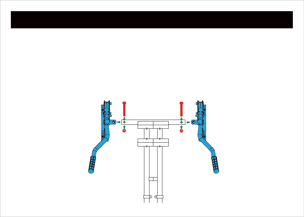 2. Insert the left and right handlebar mounts into the seat frame as shown below. Align the holes of the handlebar