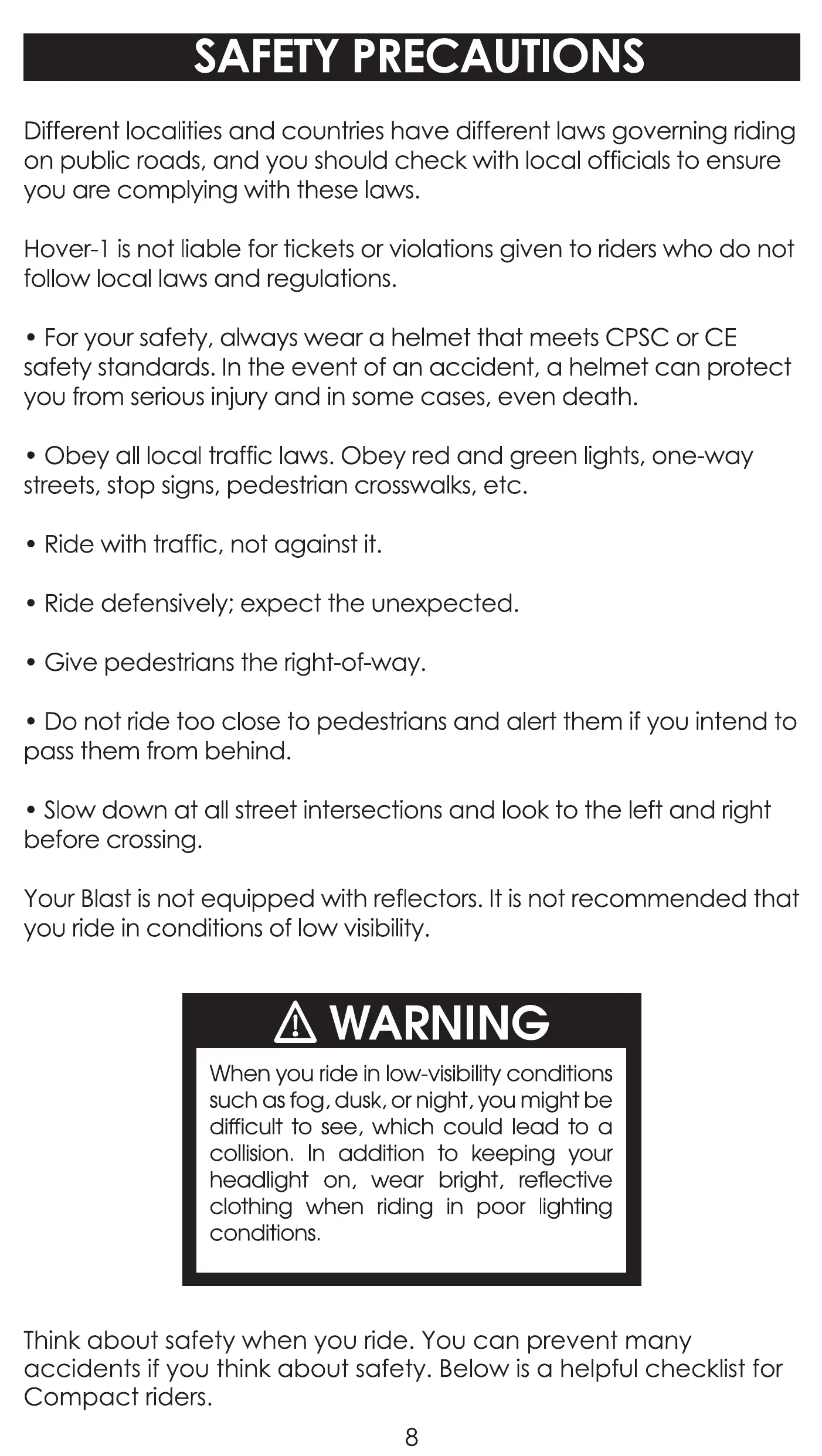 Hover-I is not liable for tickets or violations given to riders who do not