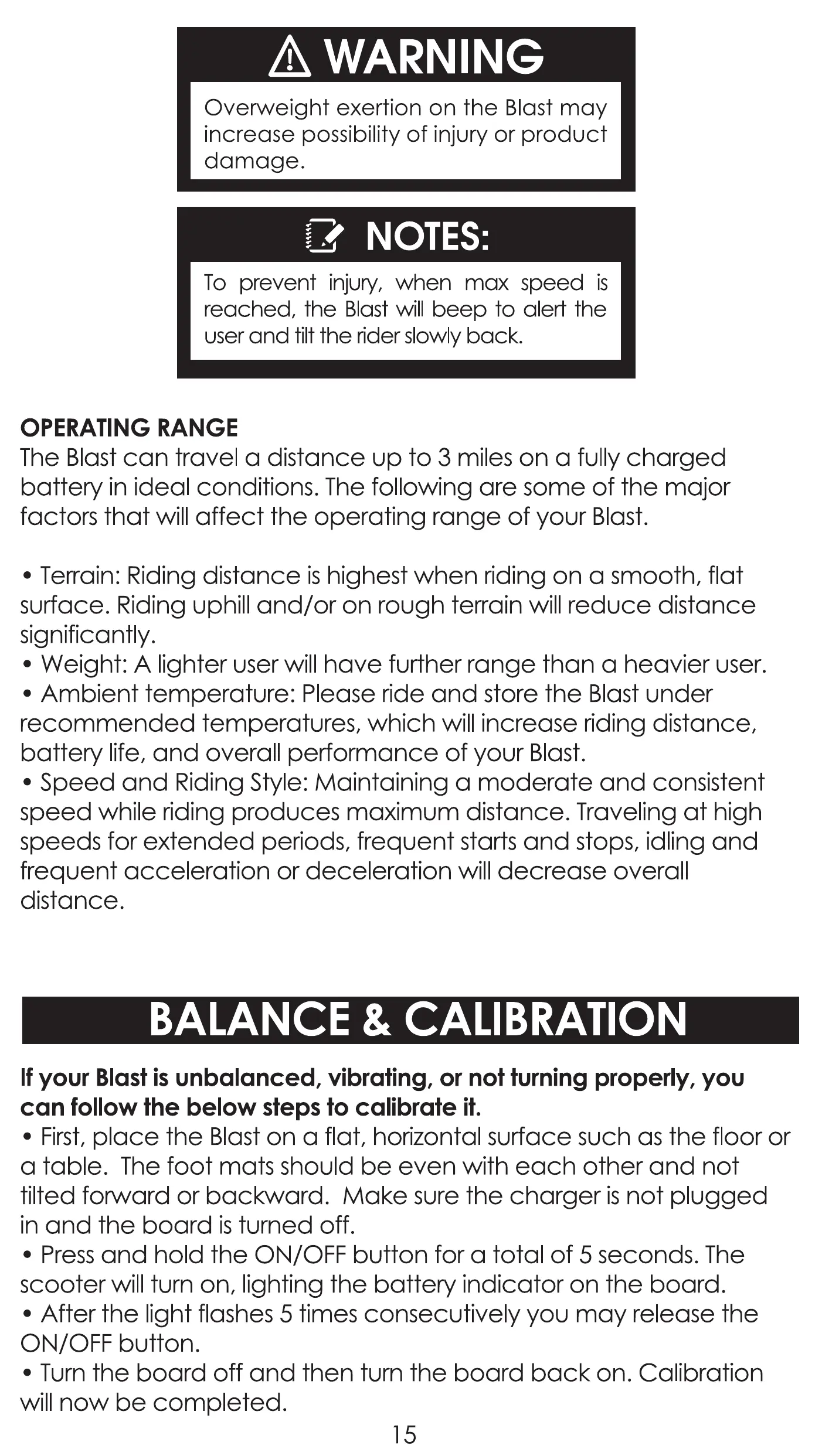 The Blast can travel a distance up to 3 miles on a fully charged