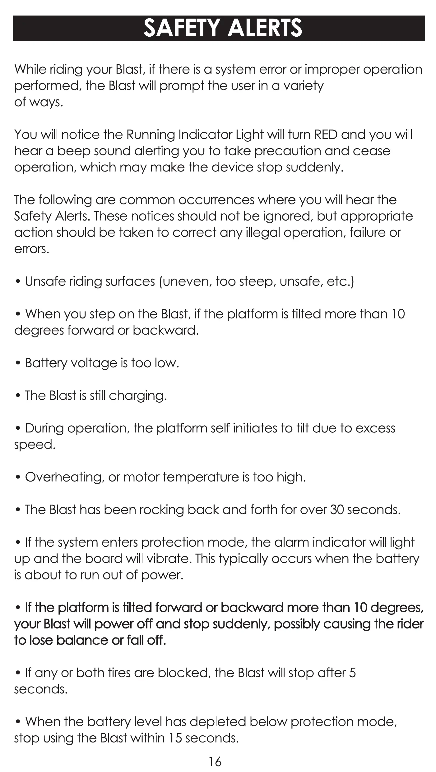 your Blast will power off and stop suddenly, possibly causing the rider