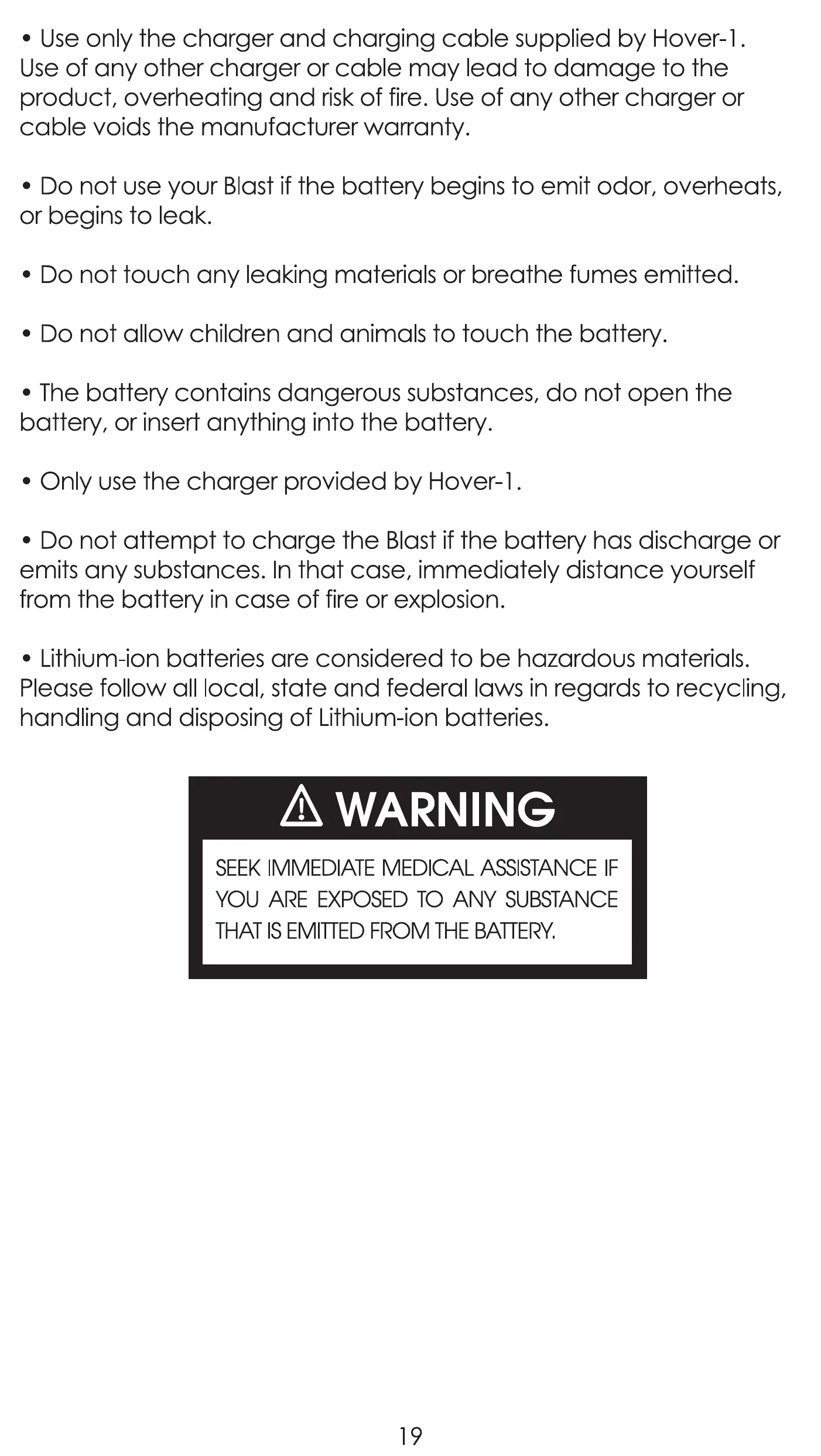 • Use only the charger and charging cable supplied by Hover-I .