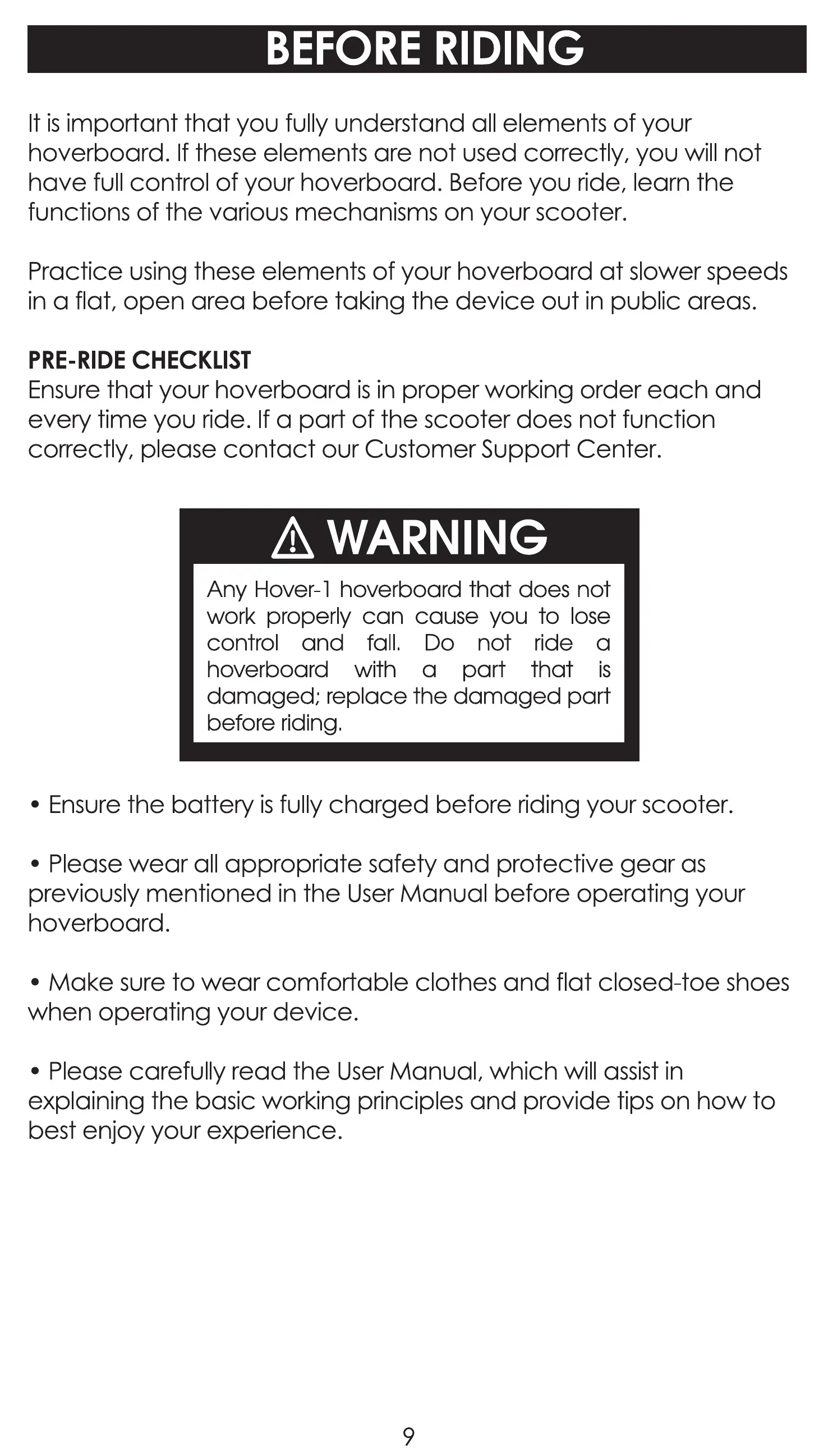 have full control of your hoverboard. Before you ride, learn the