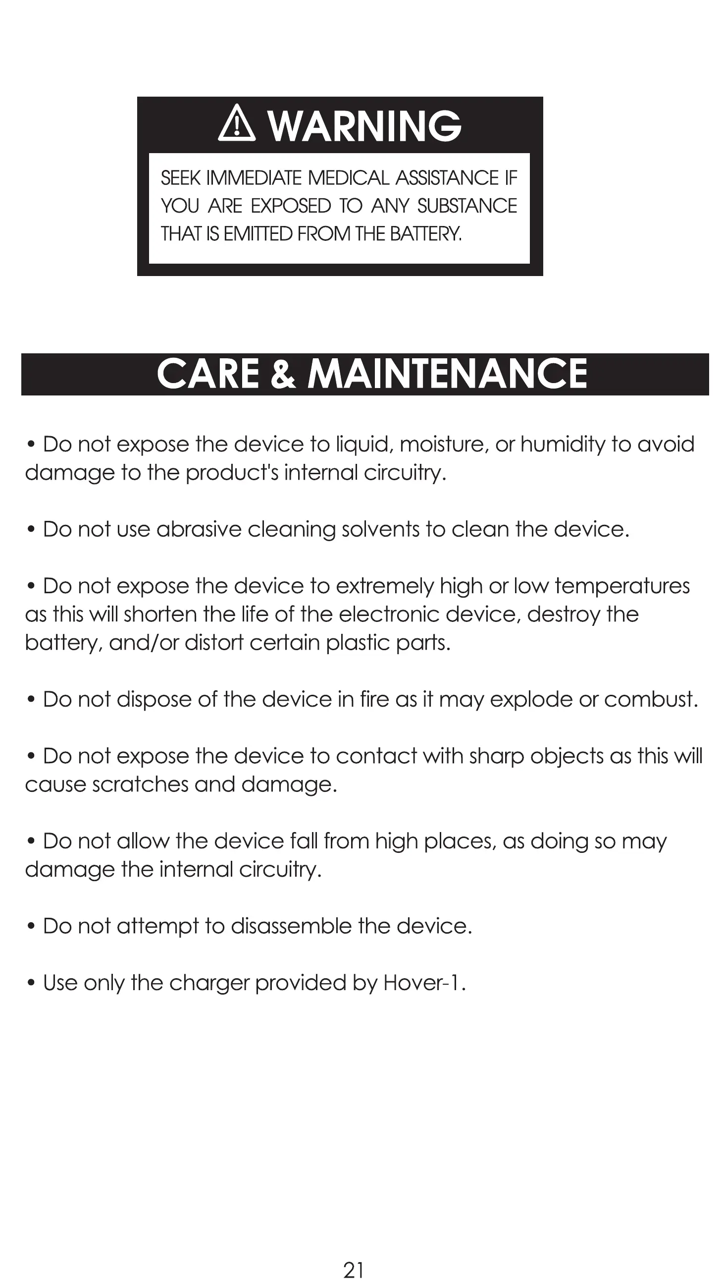 • Use only the charger provided by Hover-I .