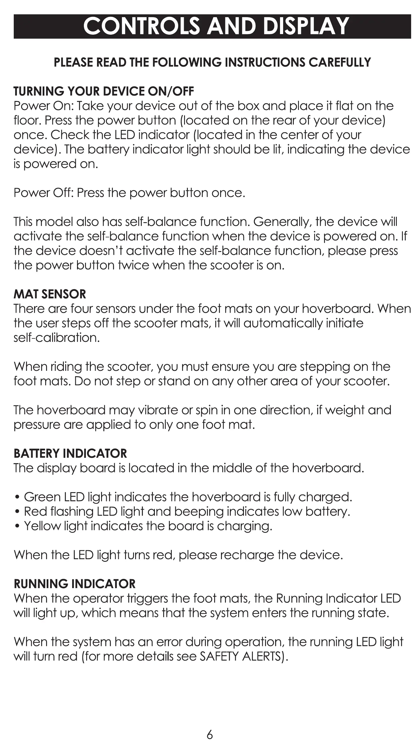 There are four sensors under the foot mats on your hoverboard. When
