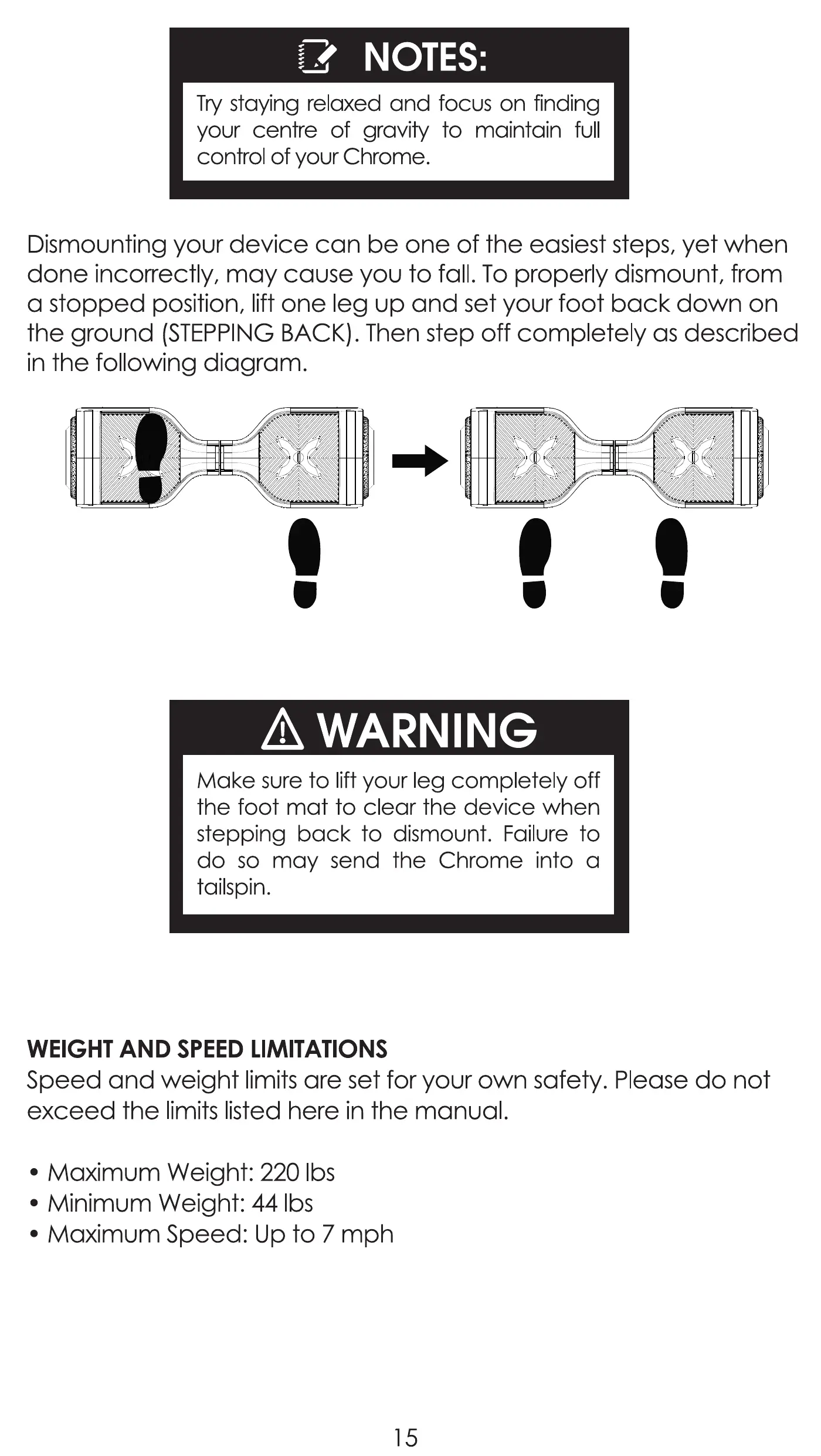 Speed and weight limits are set for your own safety. Please do not