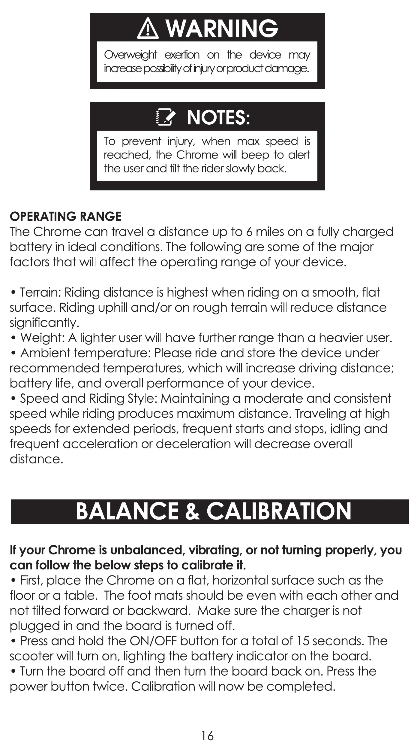 The Chrome can travel a distance up to 6 miles on a fully charged