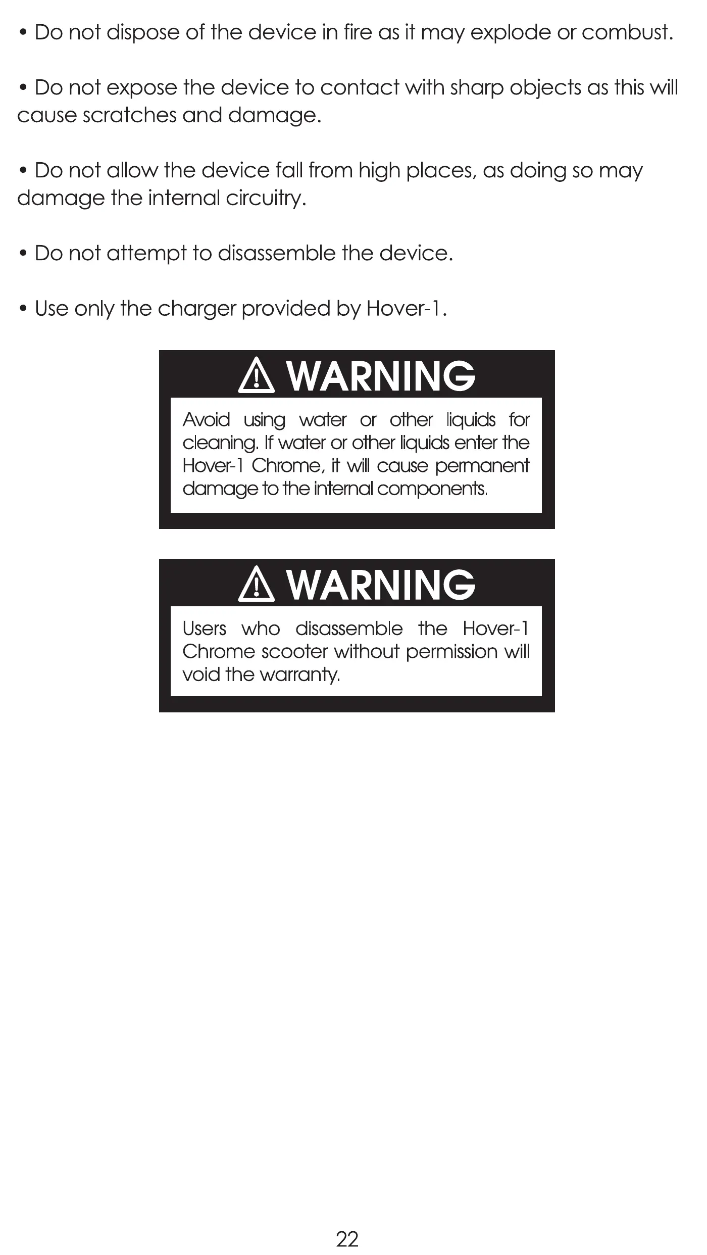 • Use only the charger provided by Hover-I .