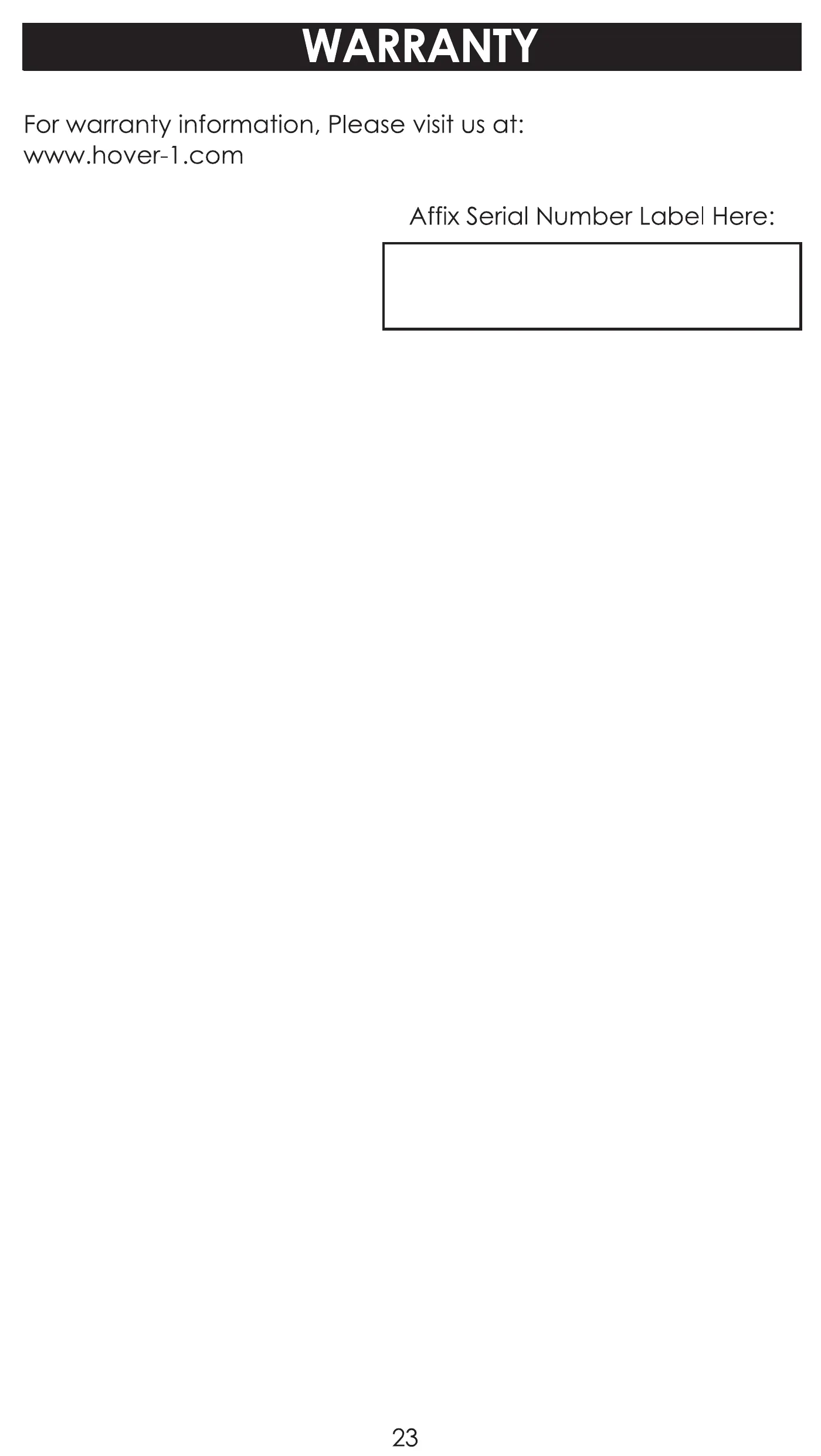 Affix Serial Number Label Here:
