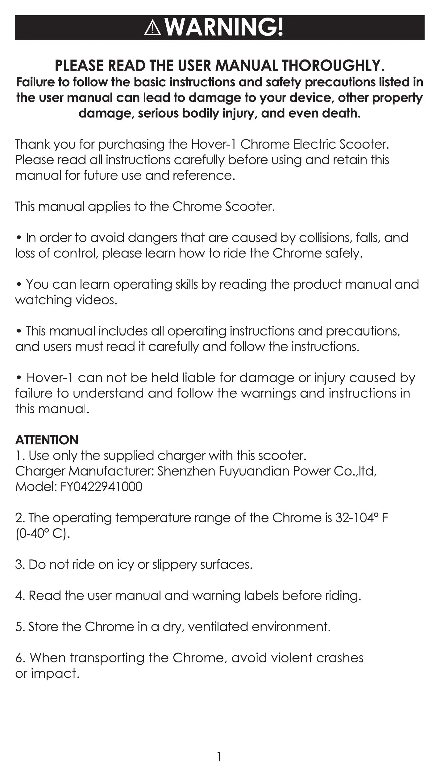 Thank you for purchasing the Hover-I Chrome Electric Scooter.