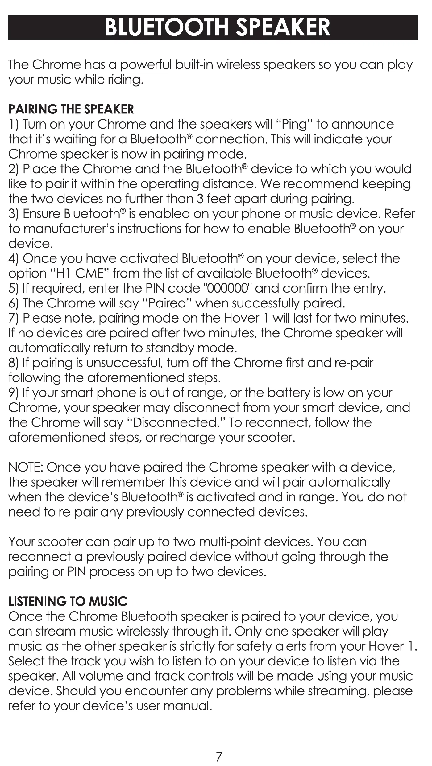 music as the other speaker is strictly for safety alerts from your Hover-I .