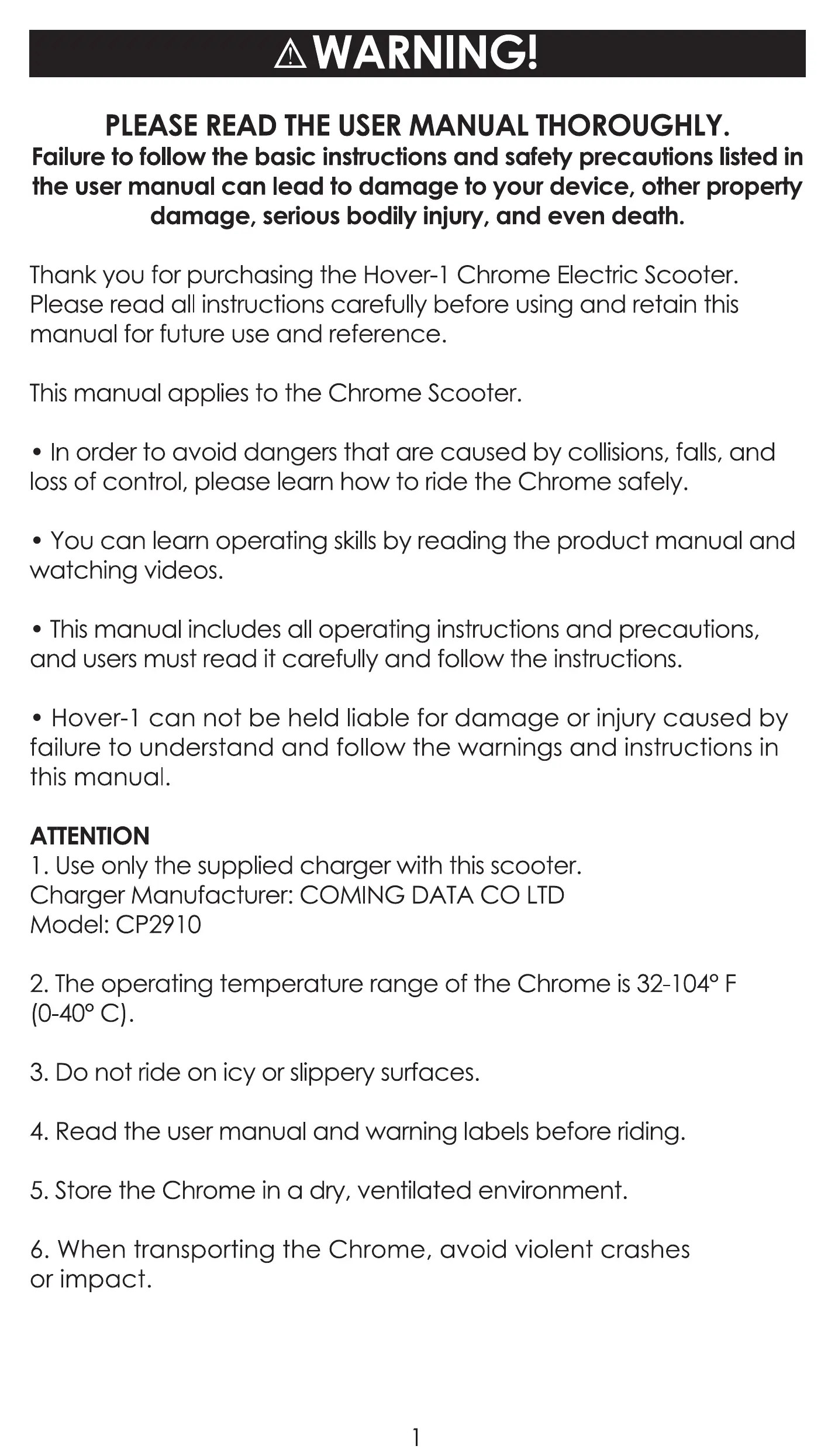 Thank you for purchasing the Hover-I Chrome Electric Scooter.