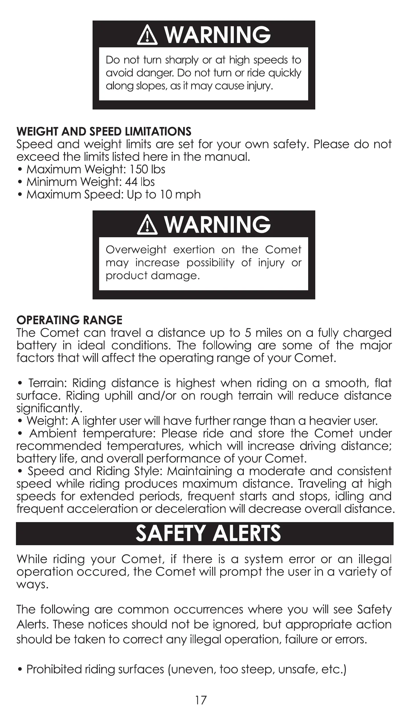 surface. Riding uphill and/or on rough terrain will reduce distance