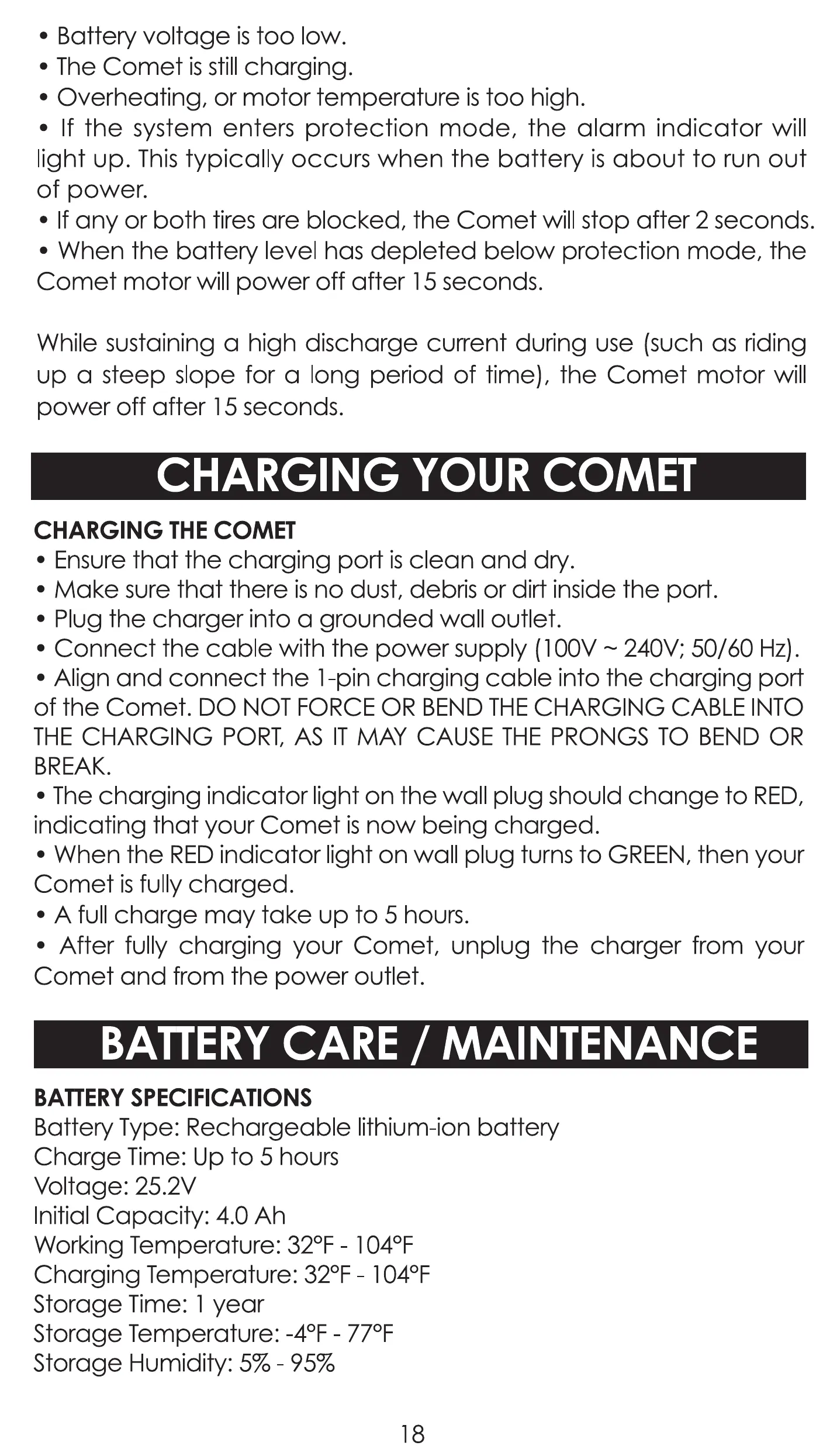 of the Comet. DO NOT FORCE OR BEND THE CHARGING CABLE INTO