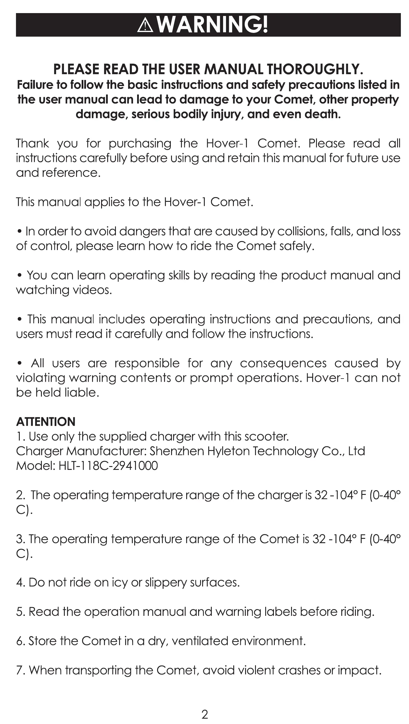 PLEASE READ THE USER MANUAL THOROUGHLY.