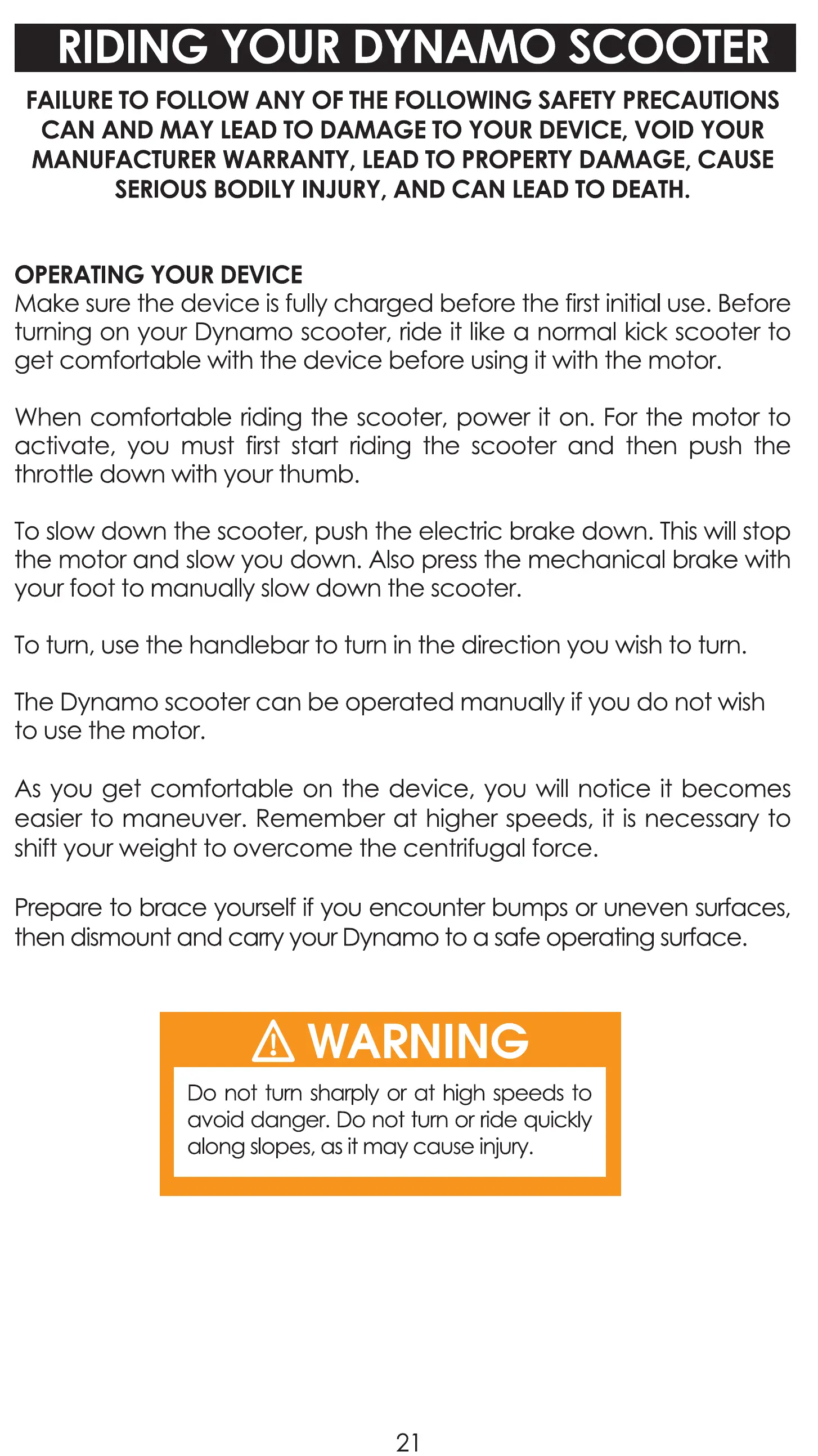 turning on your Dynamo scooter, ride it like a normal kick scooter to