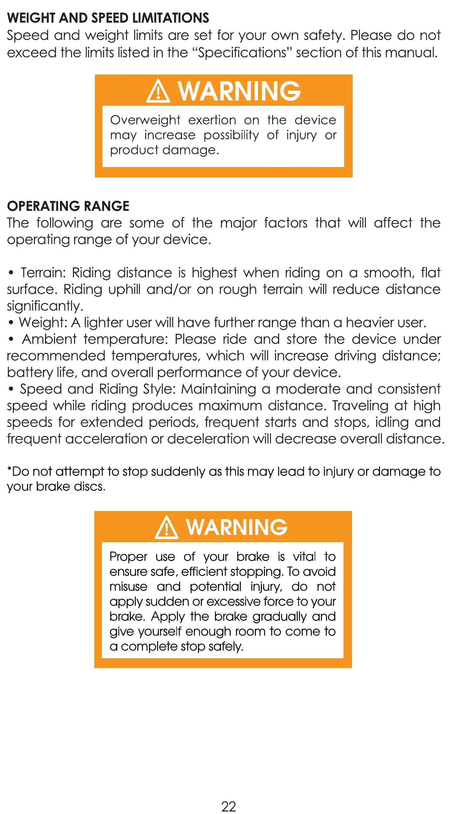 surface. Riding uphill and/or on rough terrain will reduce distance