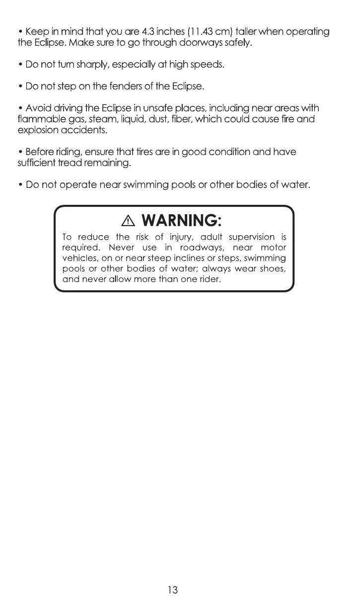 • Avoid driving the Eclipsein unsafe places, including near areas with