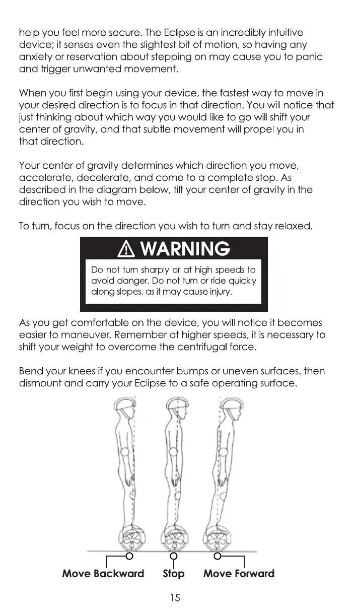 To turn, focus on the direction you wish to turn and stay relaxed.