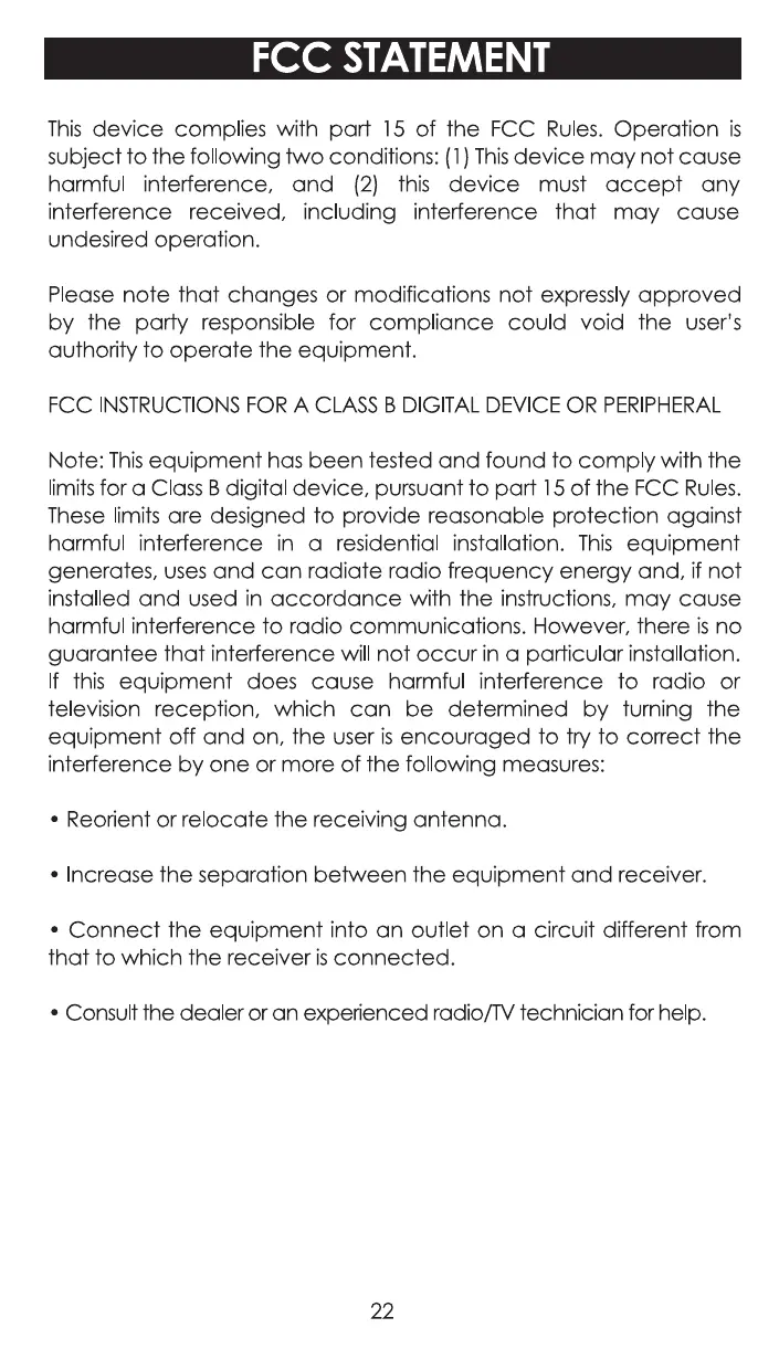 FCC INSTRUCTIONS FOR A CLASS B DIGITAL DEVICE OR PERIPHERAL