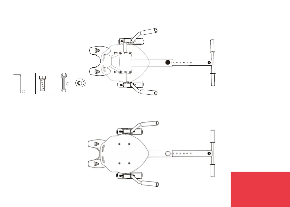 Key to fasten four of the M8 Short Screws. Secure the Bucket Seat to the frame using the 2 wrenches with four