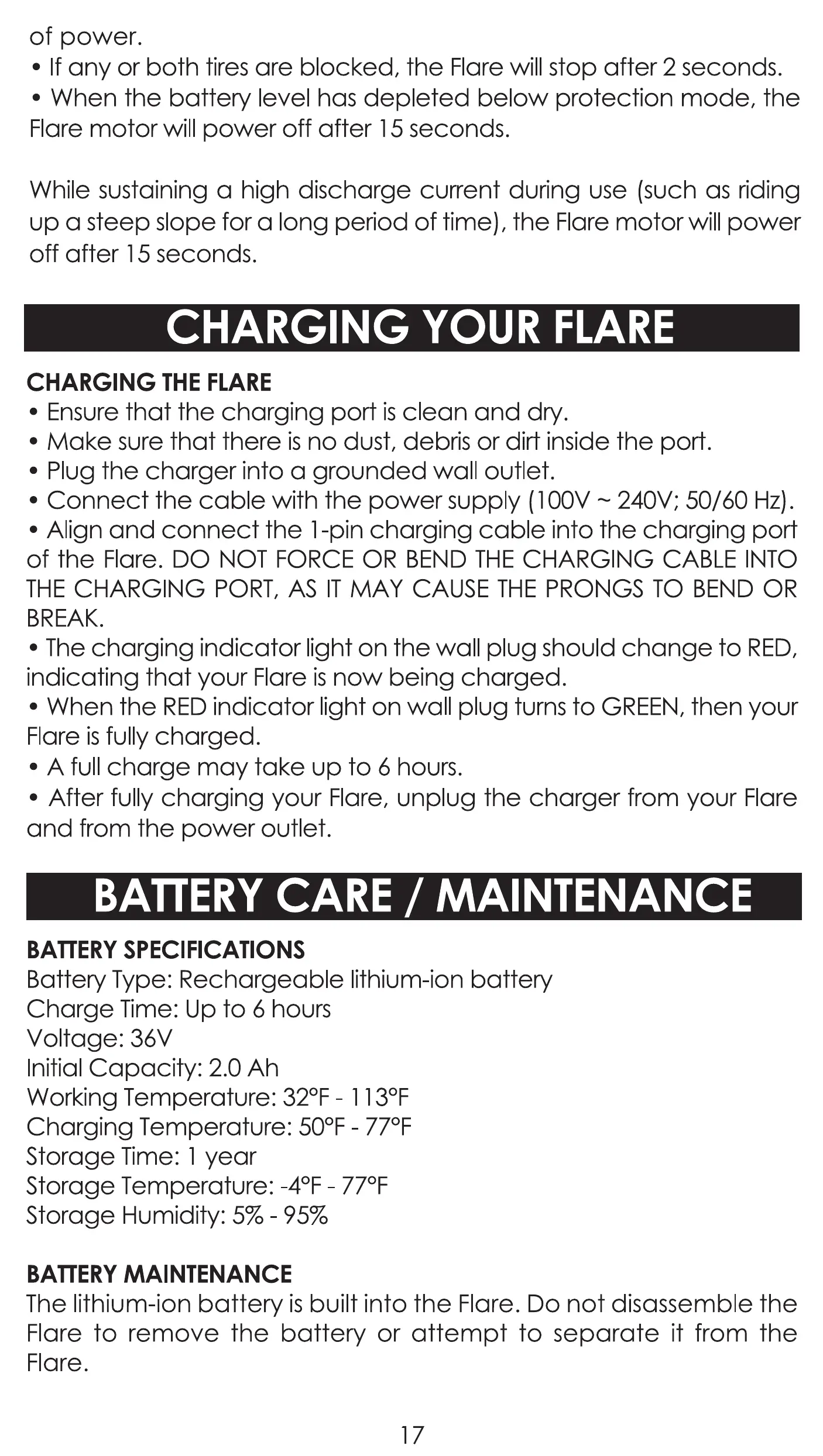 up a steep slope for a long period of time), the Flare motor will power