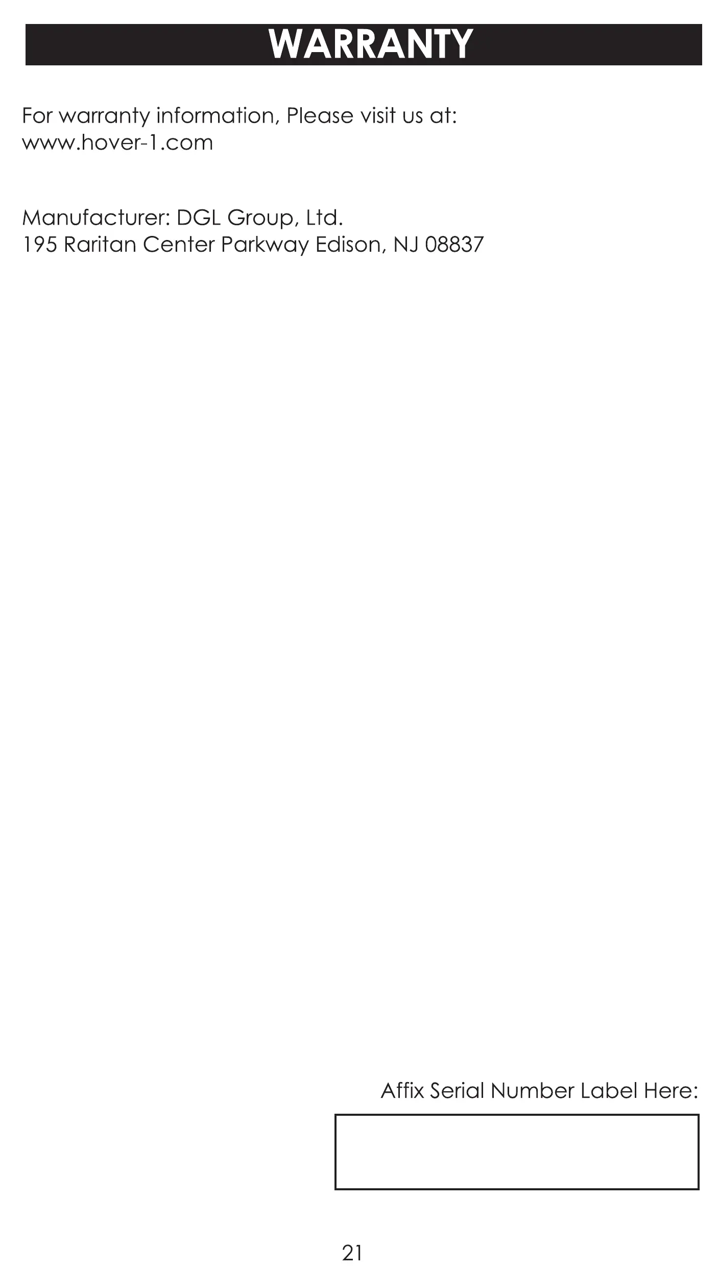 Affix Serial Number Label Here: