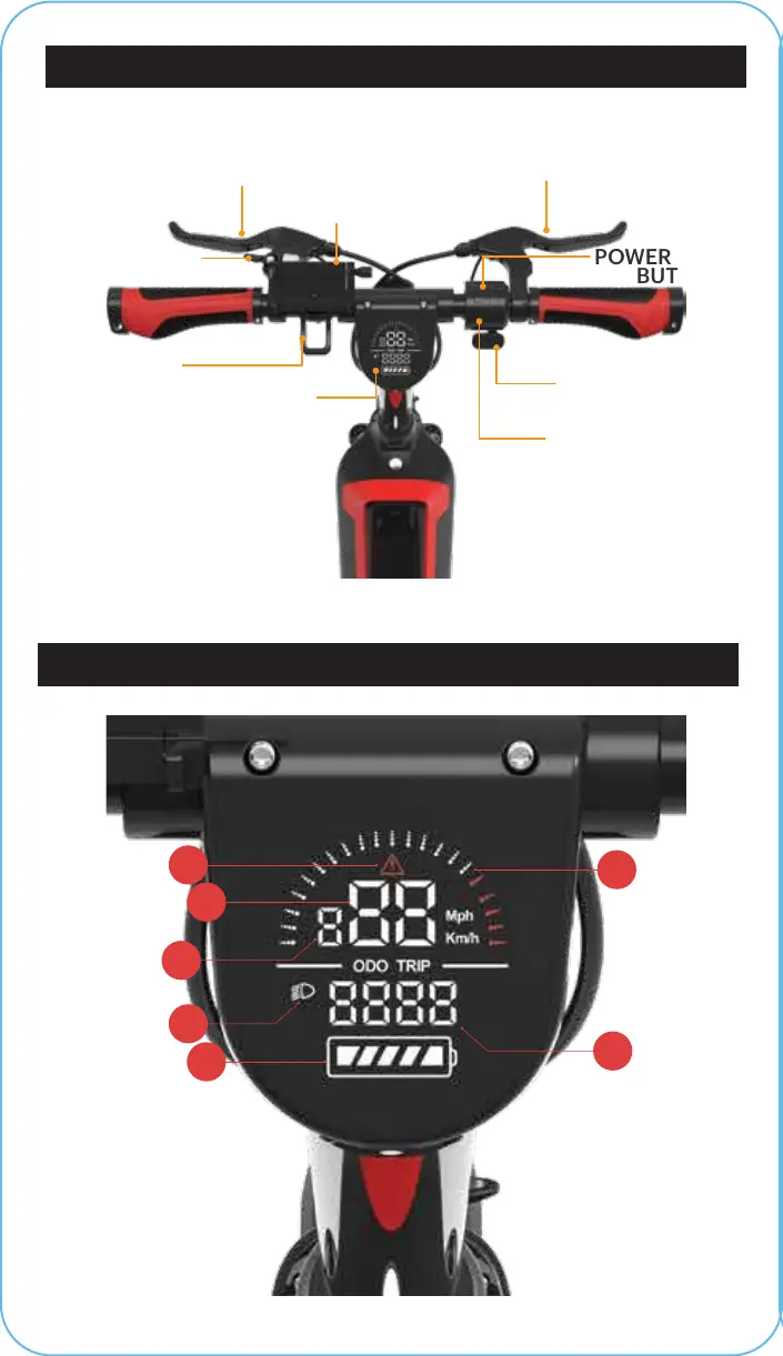 Hover-1 HELIOS - Controls and Display Information; Handlebar Control Layout; LED Display Functions