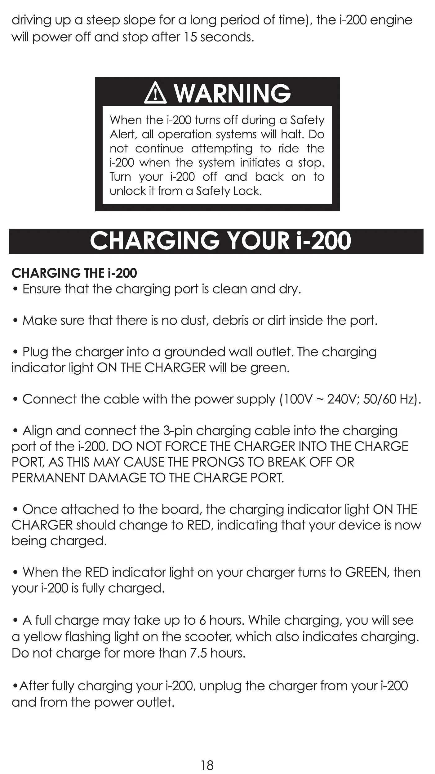 port of the i-200. DO NOT FORCE THE CHARGER INTO THE CHARGE