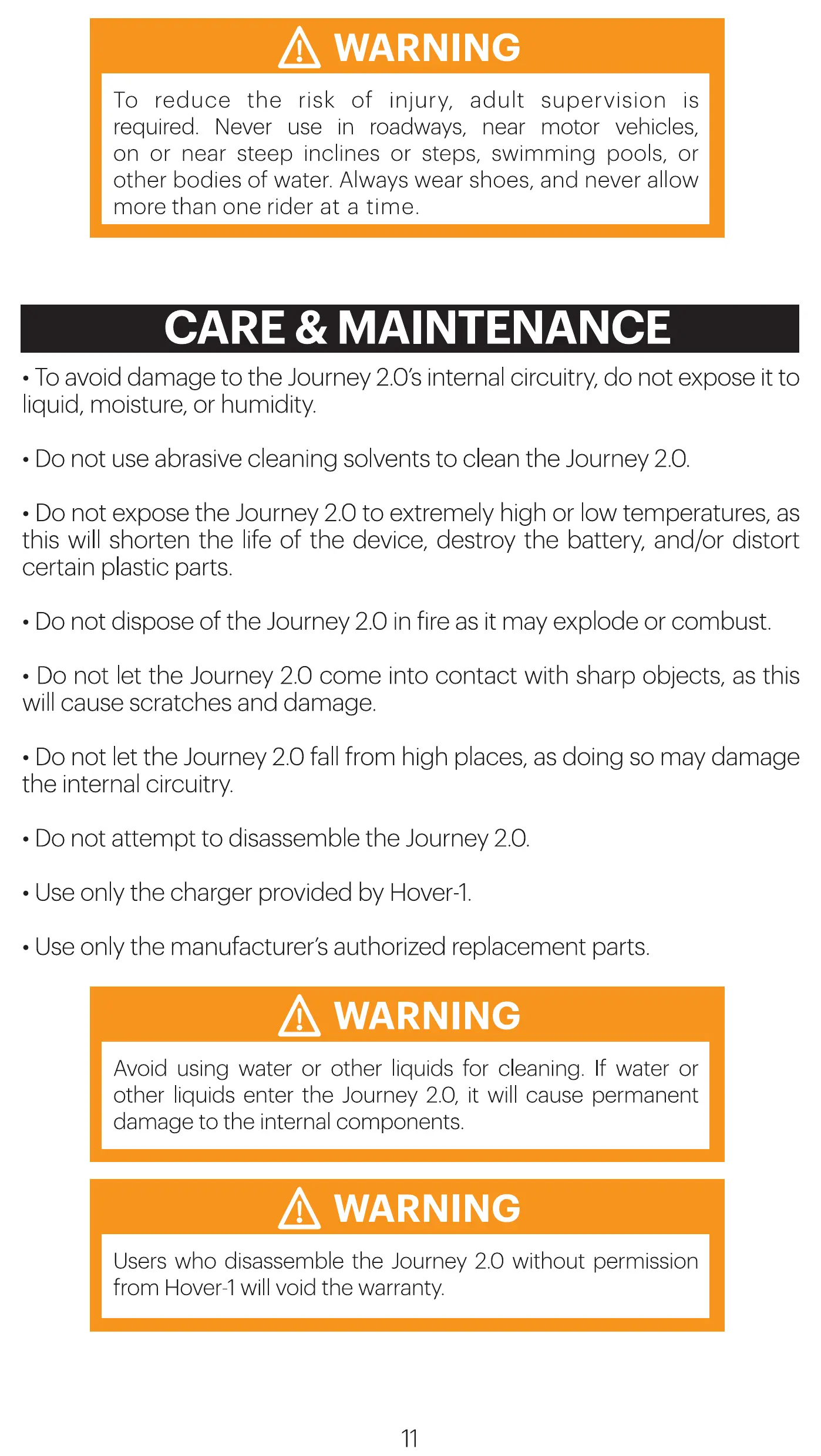• Do not attempt to disassemble the Journey 2.0.
