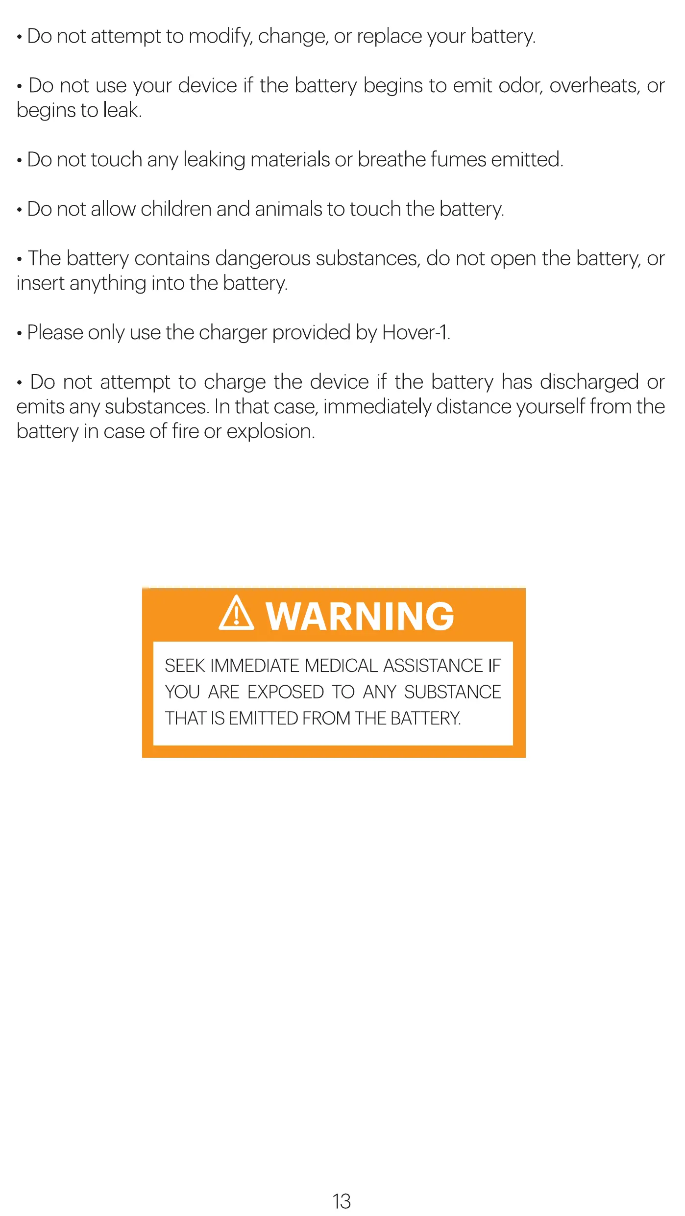 • Please only use the charger provided by Hover-I.
