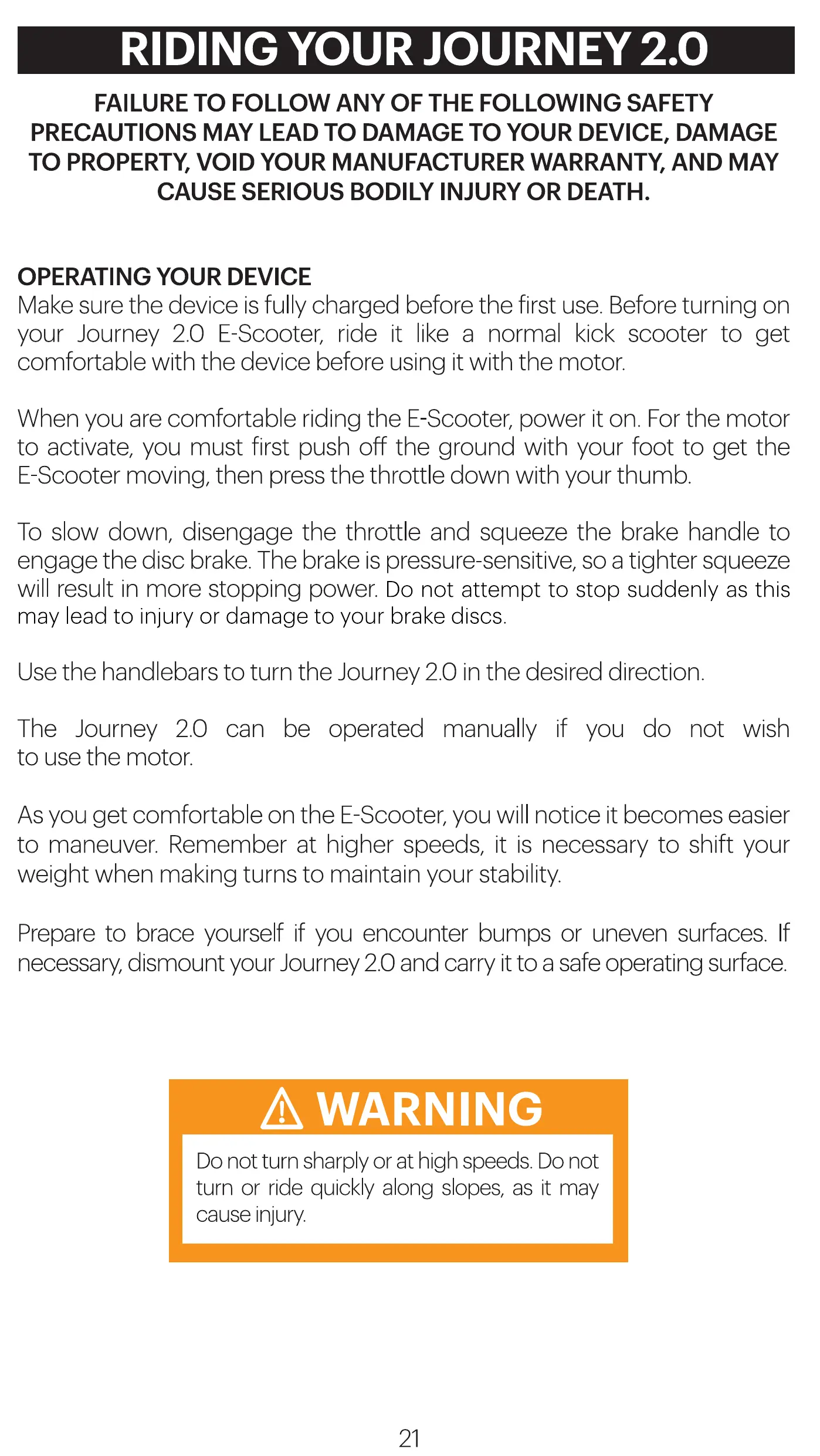 Do not turn sharply or at high speeds. Do not