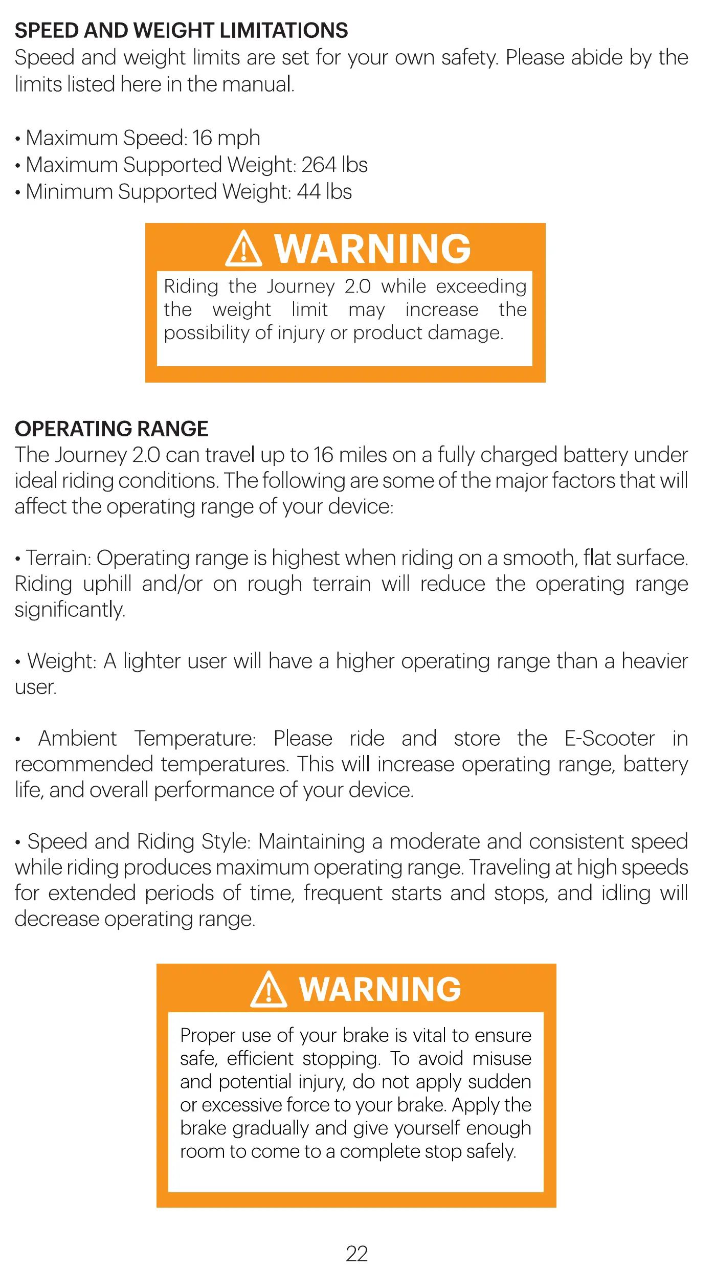 • Terrain: Operating range is highest when riding on a smooth, flat surface.