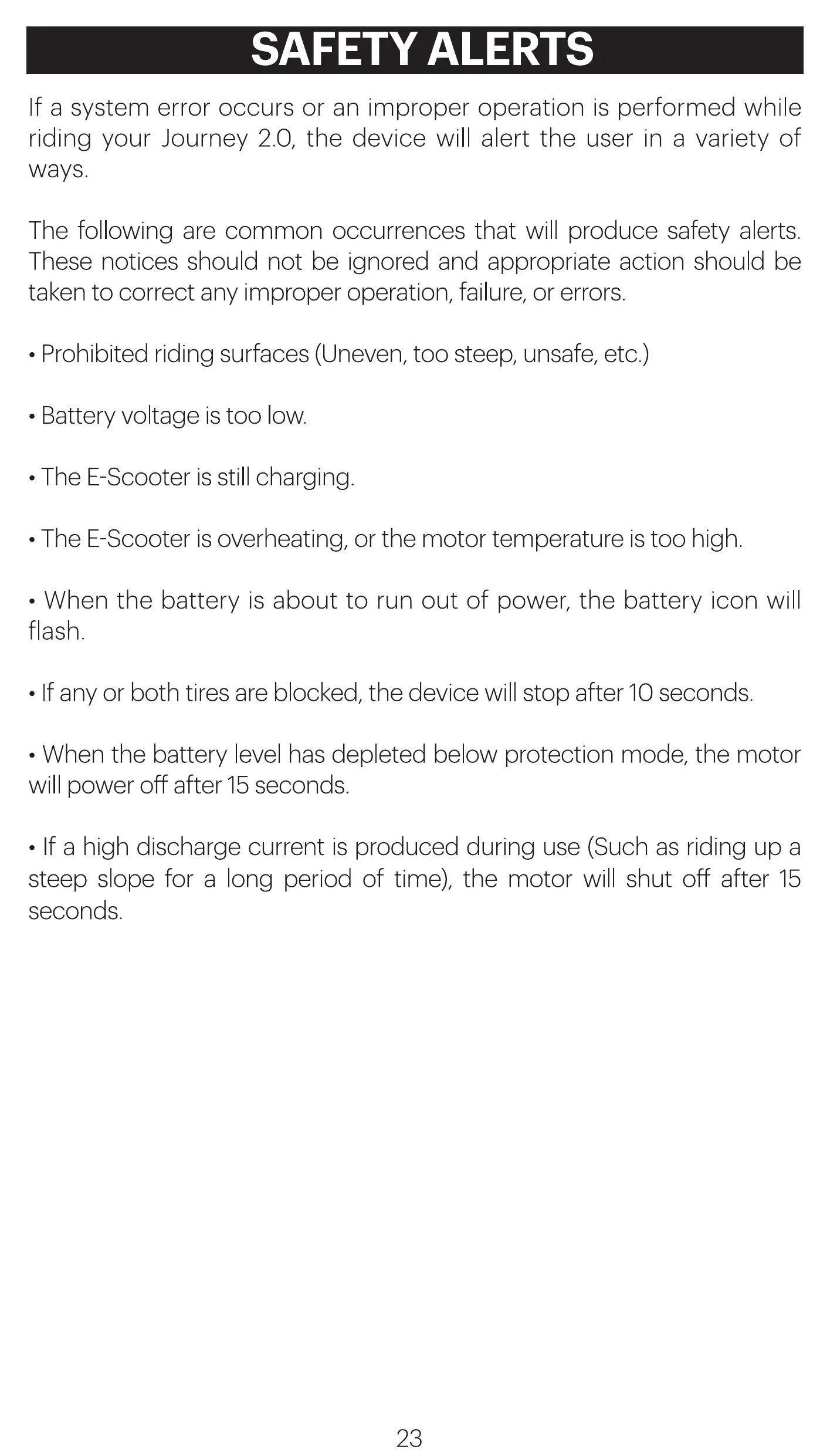 riding your Journey 2.0, the device will alert the user in a variety of