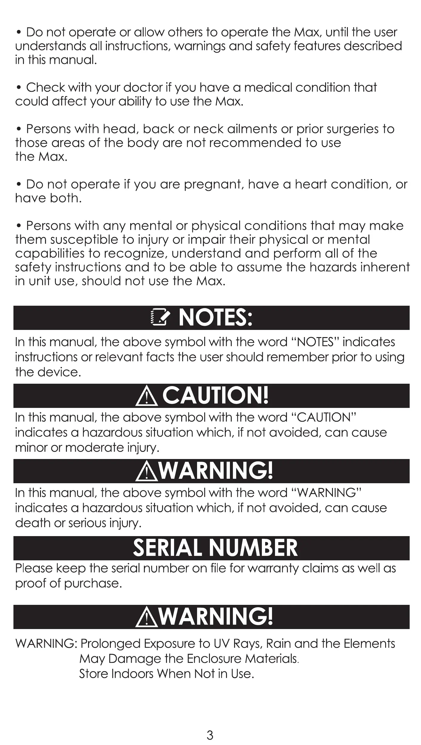 WARNING: Prolonged Exposure to UV Rays, Rain and the Elements